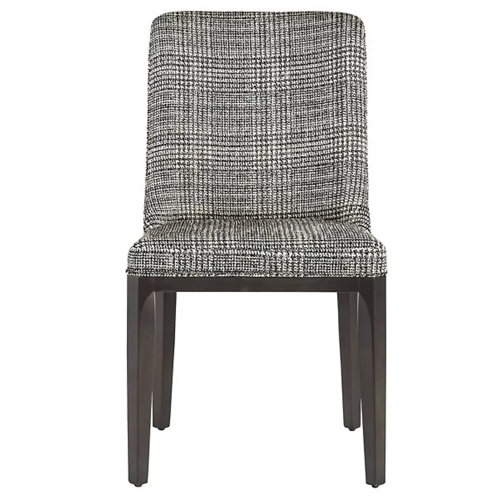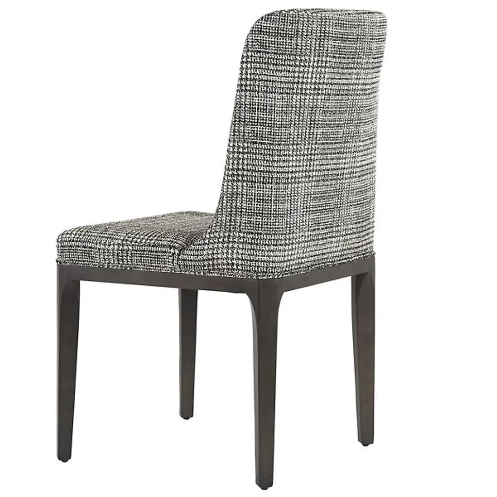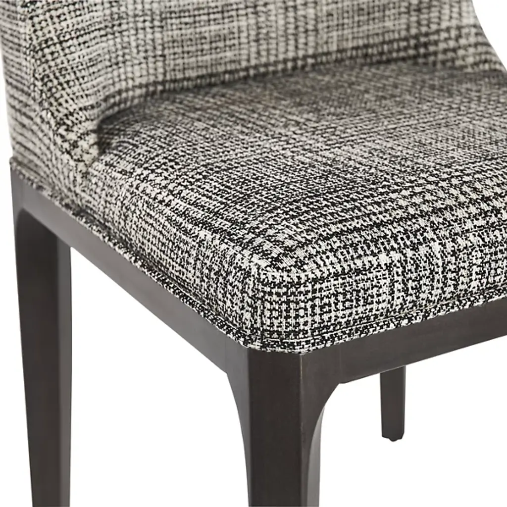 The Elisa Dining Chair from Sunpan presents an enduring modern appeal to its environs. Ascending from four legs fashioned from solid poplar wood set into a slender frame, it uses a slightly curved back to offer elegant, encompassing support. Intricate textiles sweep over a padded seat and back, contrasting with the smooth wood legs and frame below and adding a welcome touch of visual intrigue to the proceedings.