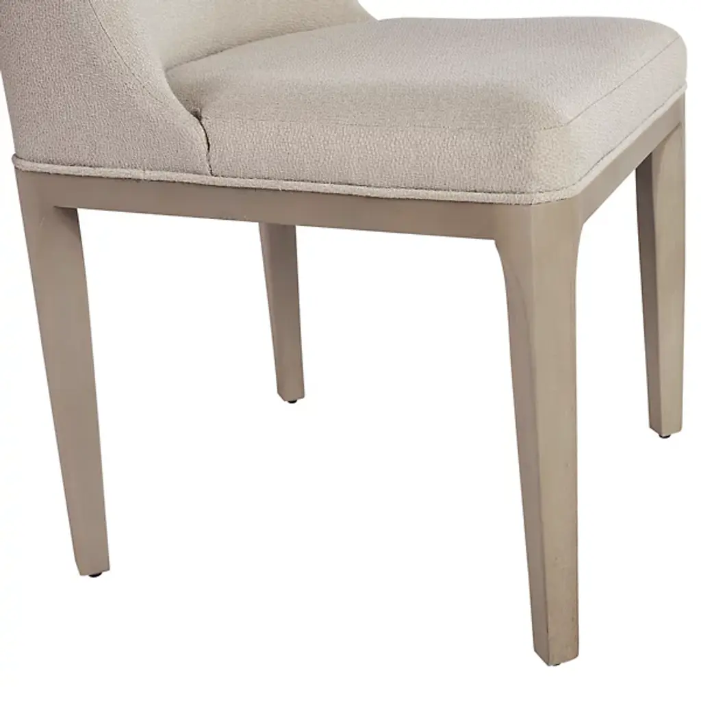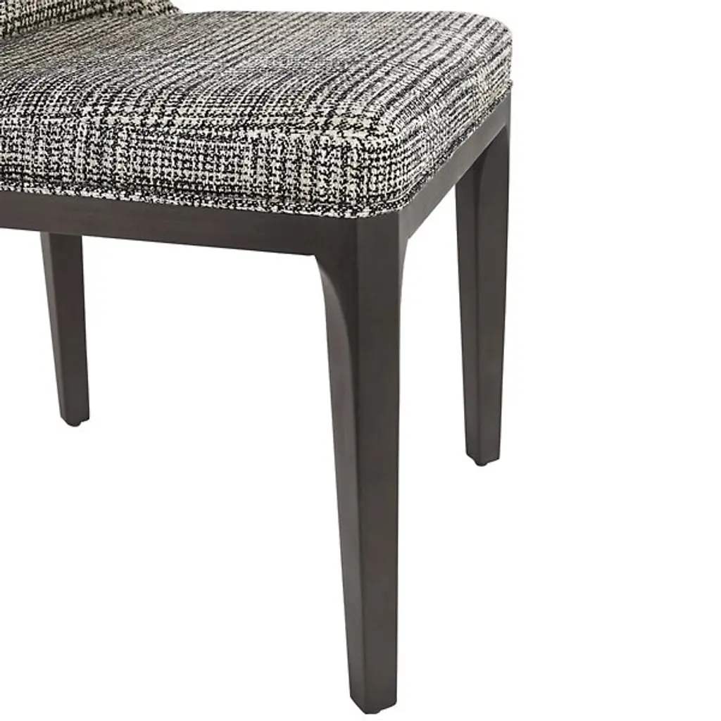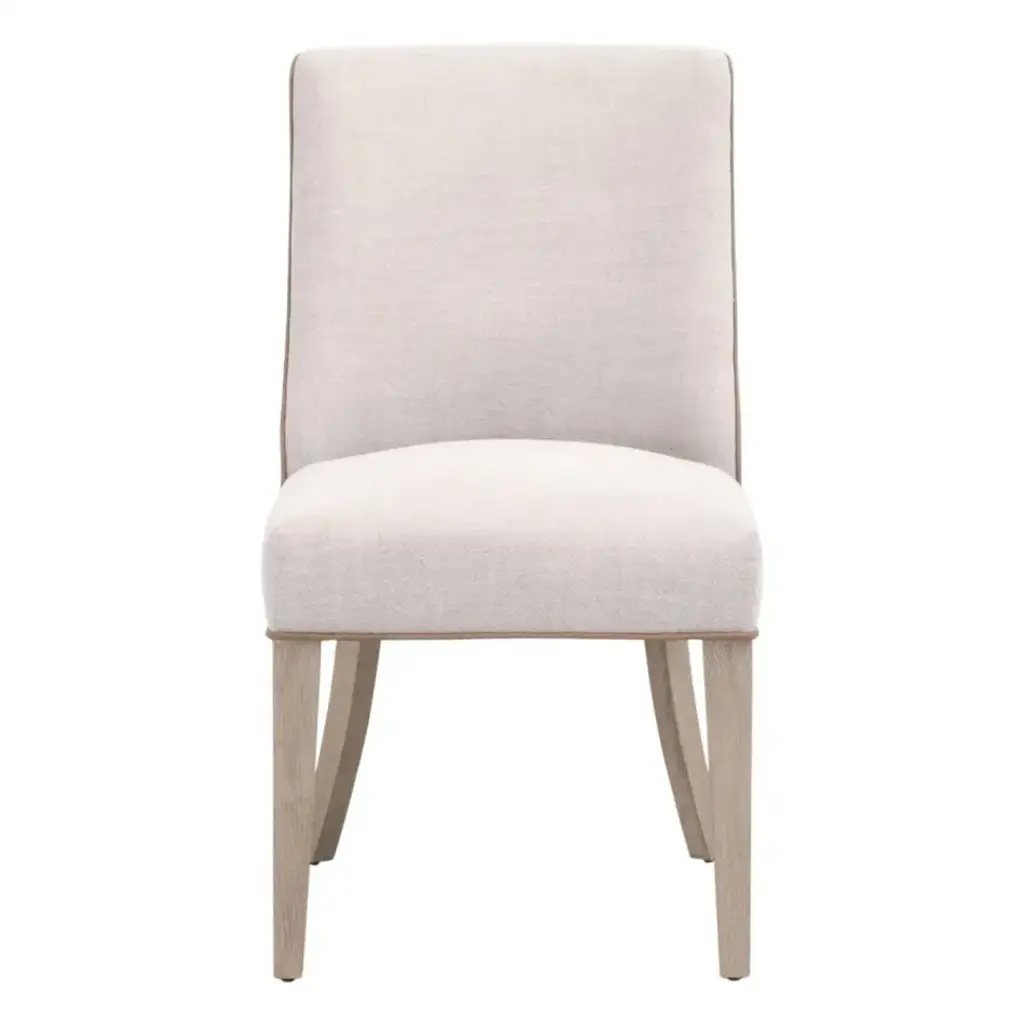 The Elisa Dining Chair from Sunpan presents an enduring modern appeal to its environs. Ascending from four legs fashioned from solid poplar wood set into a slender frame, it uses a slightly curved back to offer elegant, encompassing support. Intricate textiles sweep over a padded seat and back, contrasting with the smooth wood legs and frame below and adding a welcome touch of visual intrigue to the proceedings.