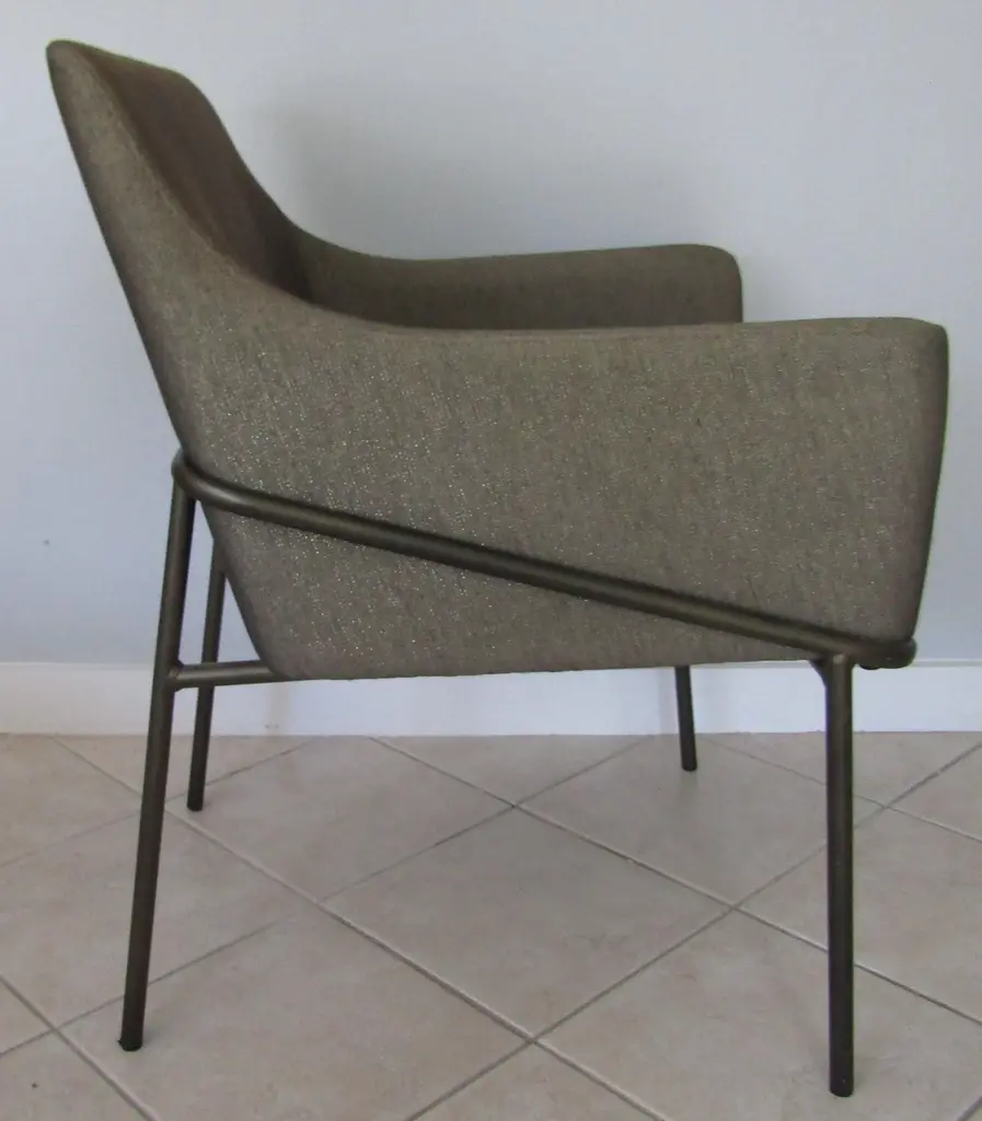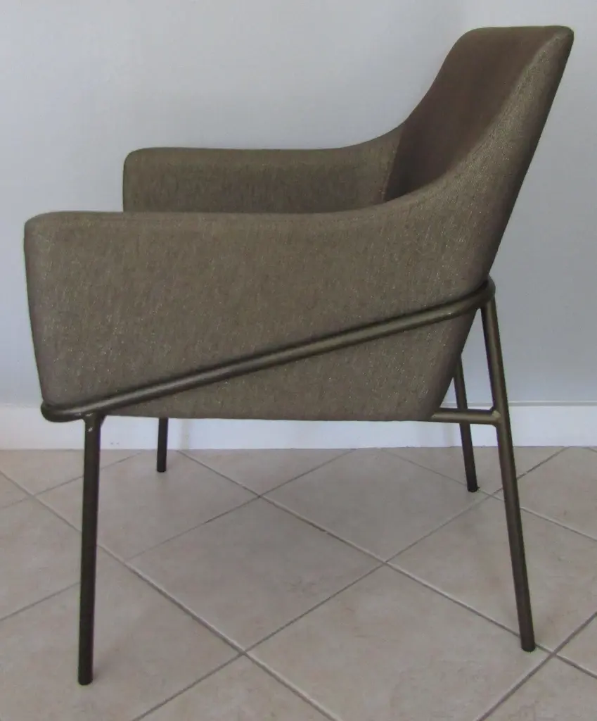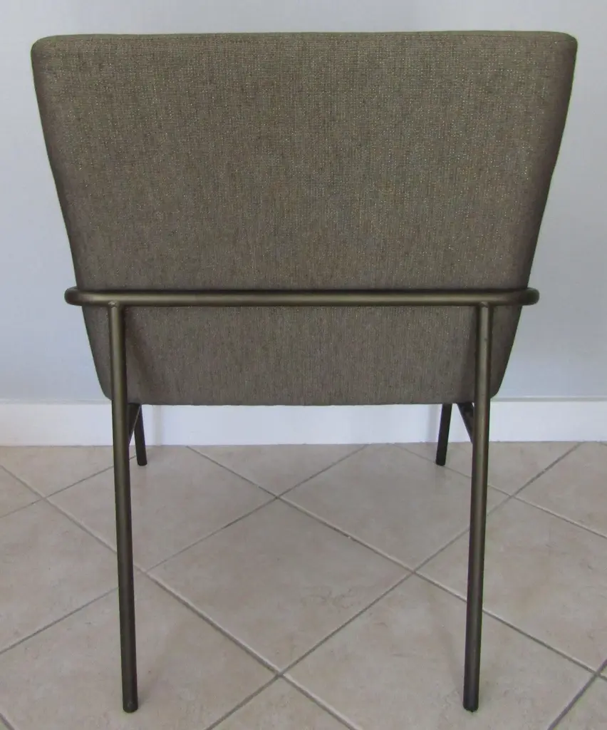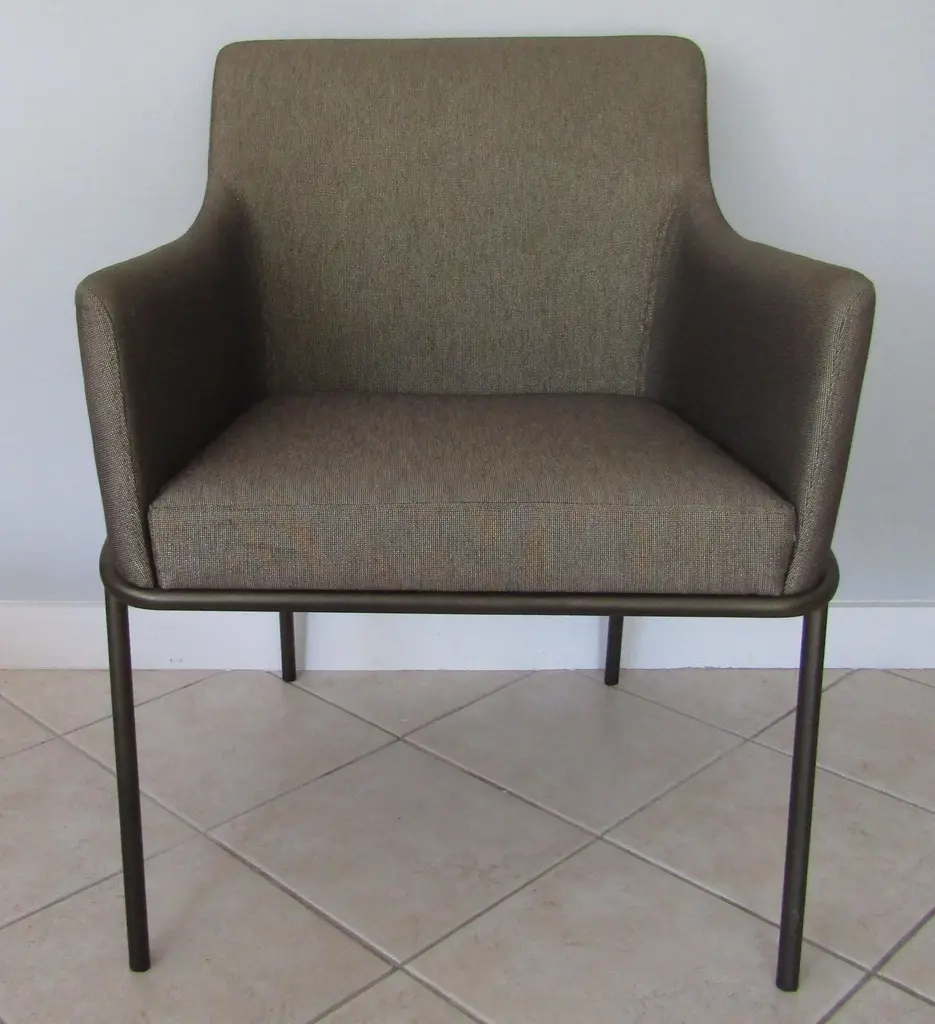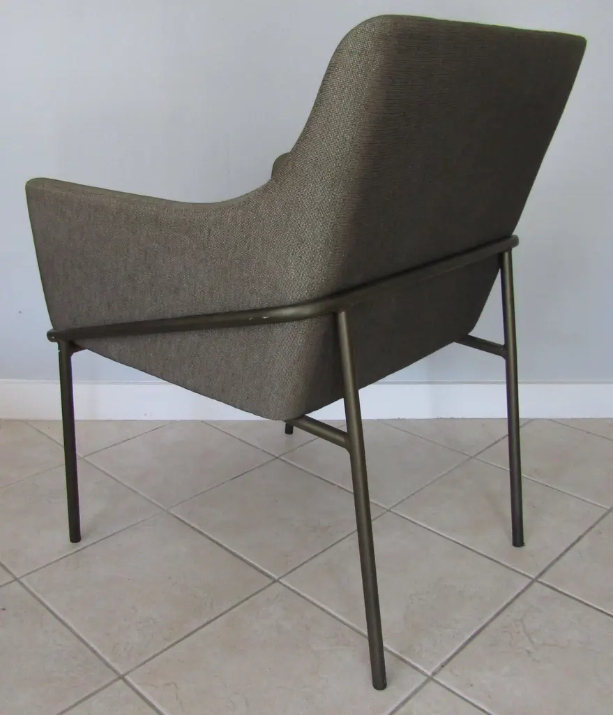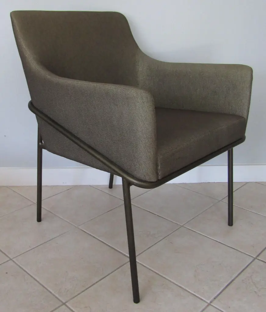 Elite Modern Blake Dining Chair Designed by Carl Muller Inspired by classic mid-century designs, Blake offers a refreshingly soft modern look. Smooth, sexy curves and a subtly flared silhouette make Blake perfect for today’s interiors. A single sinuous seam outlines the fluid upholstery, creating a unified design statement. Blake offers exceptional comfort, and will easily coordinate with any popular dining tables and compliment any interior design scheme. Design by Carl Muller Measures 33" tall, 24 1/2" wide and 24 1/2" deep. The arm height is 28". Seat height is 33", width is 20" and the depth is 18".
