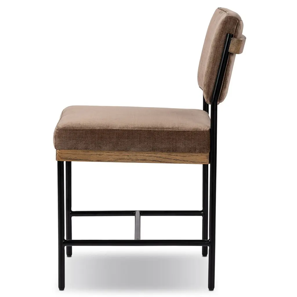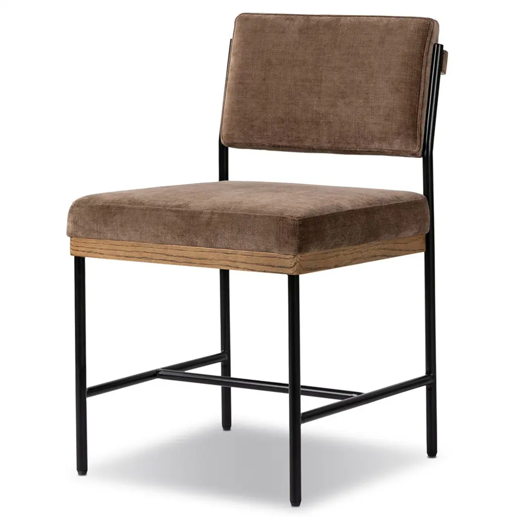 Ellie Modern Classic Brown Velvet Oak Iron Dining Chair