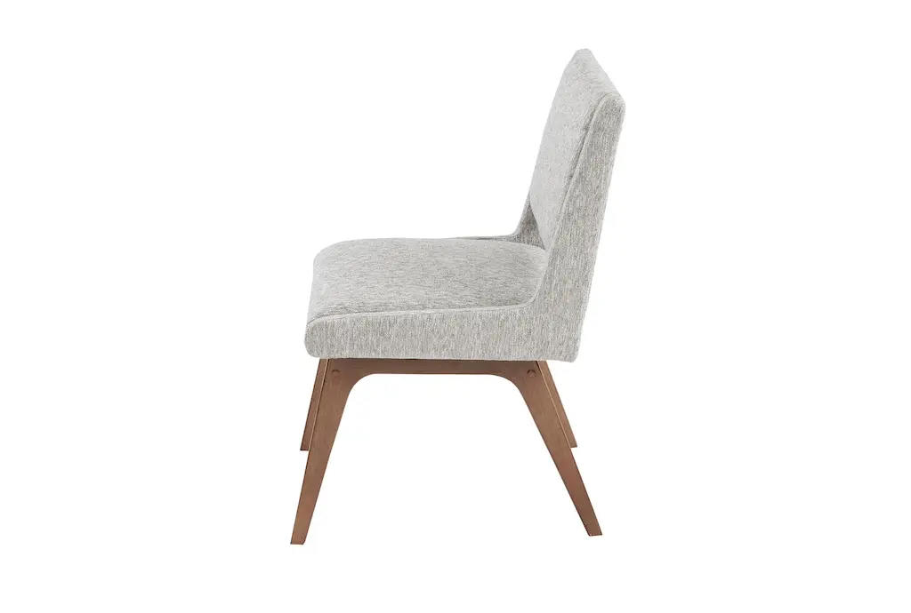 Enhance your dining experience with the Ellison Grey Fabric Dining Side Chair Set of 2. These modern armless chairs feature a light grey fabric upholstery that complements any dining room or kitchen decor. The pecan-finished rubber solid wood legs add a touch of warmth and stability to the design.