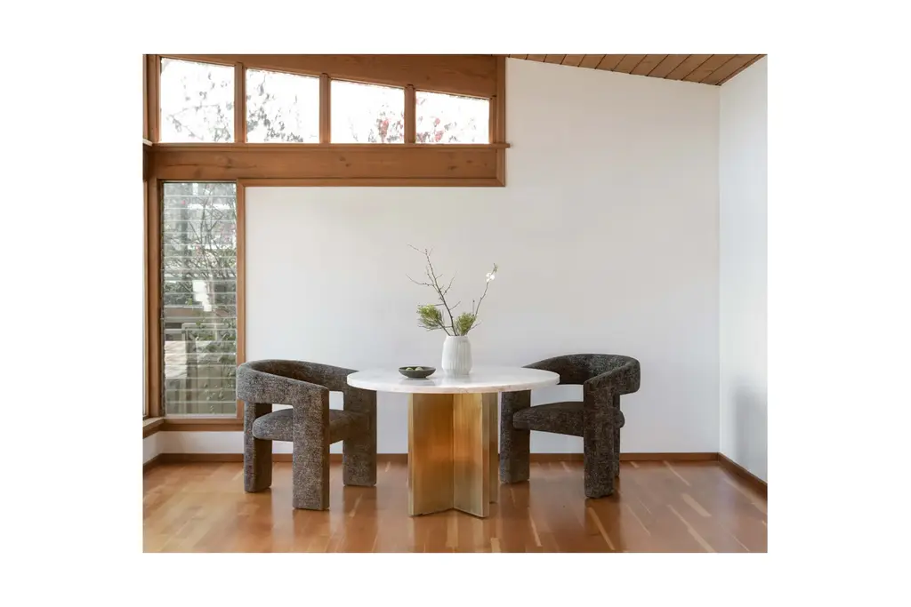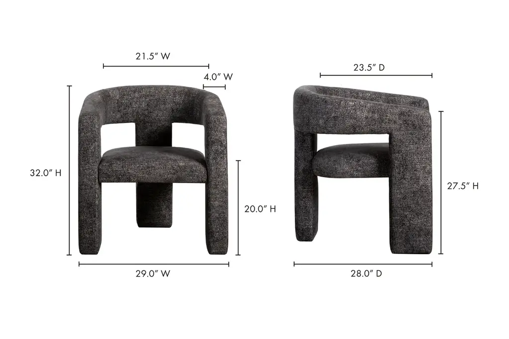 The Eloise Dining Chair blends a sculptural silhouette and playful, soft upholstery to create a unique and functional seat. Plush foam cushions, a rounded backrest, and sloping arms create a comfortable and supportive sit. Let your dining room reflect your personality with one of the six upholstery options. Don't let its name fool you either – this versatile chair looks equally stylish outside the dining room as an occasional piece or office accent.