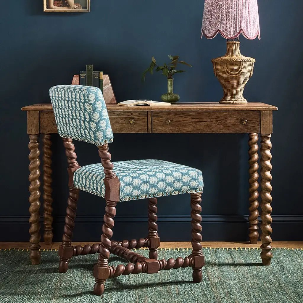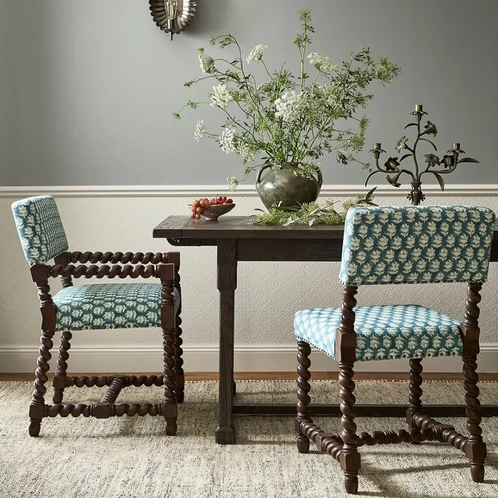Traditional with a twist. In FSC®-certified solid wood with a carved wood frame, natural latex cushion, and tack trim, this heirloom chair is an antique-chic classic.