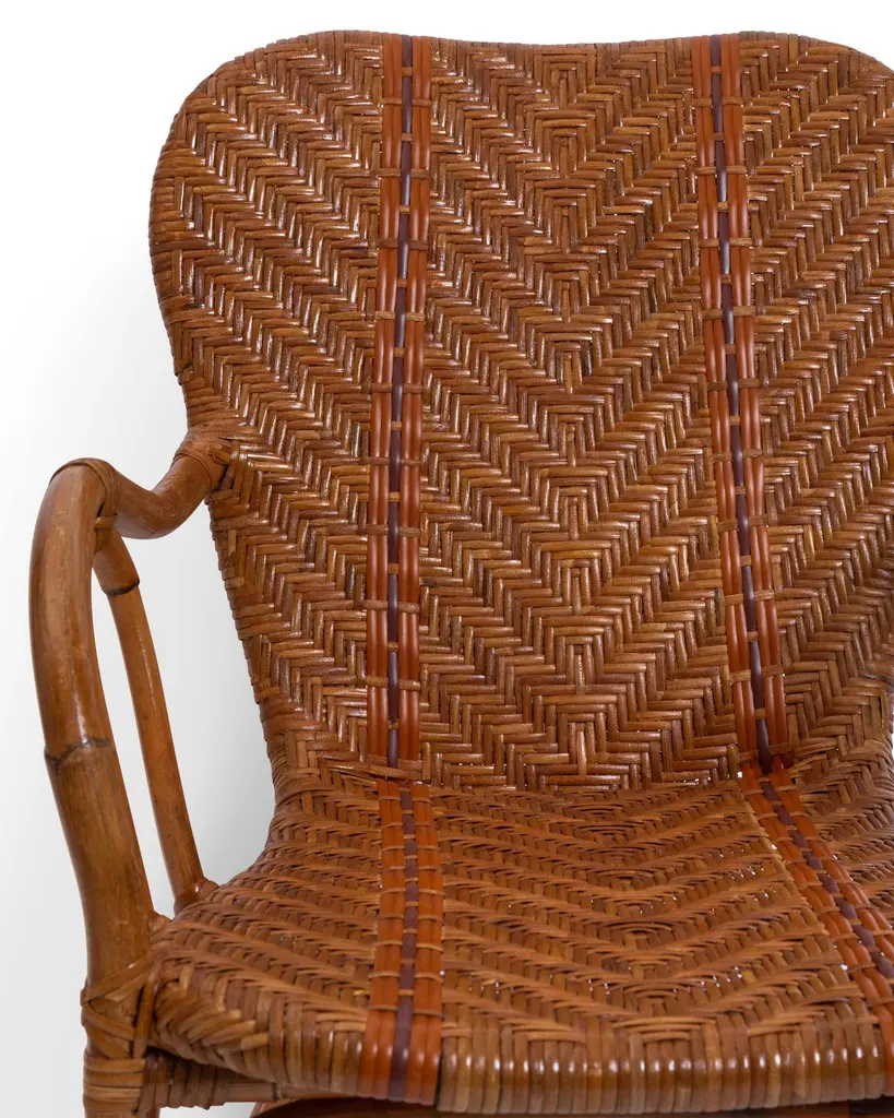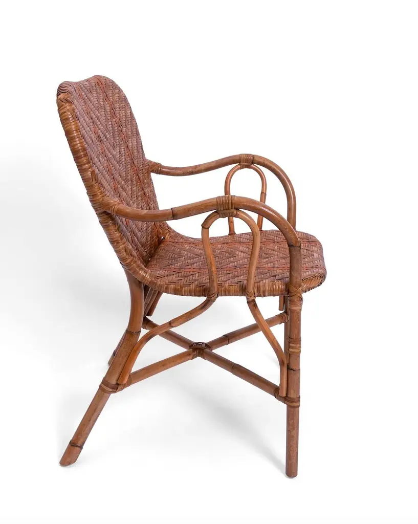 Ready for the garden or the living room, the Emerson dining chair set is part of our first outdoor rattan collection. Handcrafted by artisans, Louise's design calls to mind antique rattan pieces from the Belle Epoque, perfect for a long alfresco lunch with friends. The Emerson collection also includes a side table, which looks lovely nestled between our two armchairs, plus a dining table. Available in two colourways: Bistro green, and Clay. Our Emerson collection has been treated with a water-repelling finish, making it suitable for outdoor use, except in extreme weather.55cm W x 63cm D x 84cm H. Seat height: 43cm21.6" W x 24.8" D x 33" H. Seat height: 16.9"Suitable for outdoor use. Place under cover during extreme weather. For cleaning, remove dust with a vacuum cleaner or dry brush. For a deeper clean, wipe down with a damp cloth.