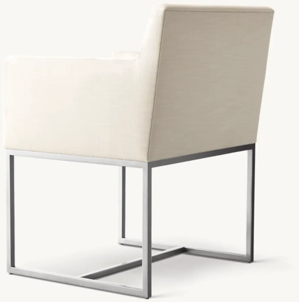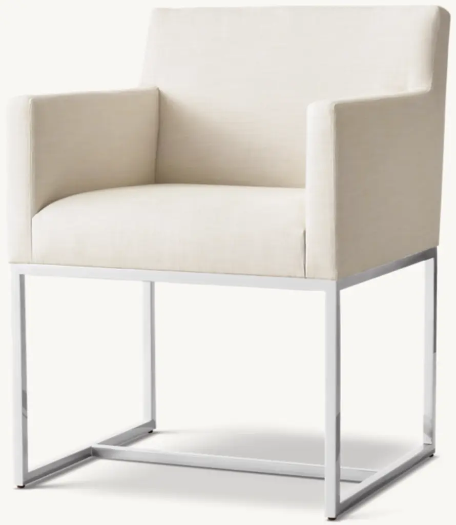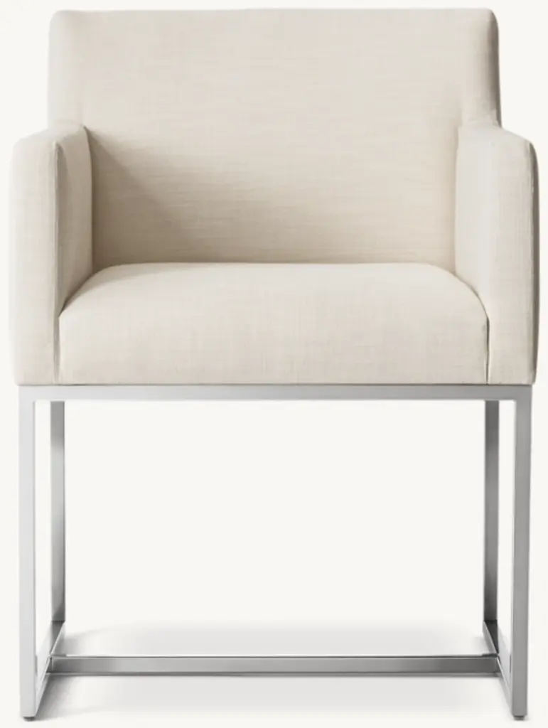 A tubular steel base gives our postmodern armchair a machine-age reference. Its slender legs support the impeccably upholstered seat and back for a crisp and geometric silhouette. Plush foam cushioning provides the perfect combination of comfort and enduring support.ALSO AVAILABLE IN LEATHERSHOP THE ENTIRE COLLECTION