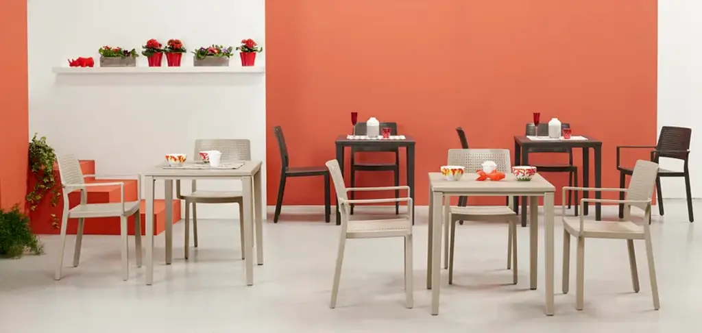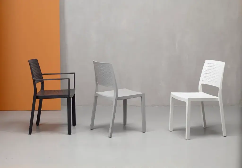 SCAB Design presents the Emi and Kate chairs, created from the synergy between the design of the Arter&Citton studio and the research of Engineer Bordiga. Practical and decisively aesthetic chairs, ideal for business projects and in line with SCAB Design's production vocation, always oriented to soft organic shapes and functionality. The new Emi and Kate chairs give life to a product family designed with rigid and linear traits, but by no means reduced expression of mere functionality. Available as chairs and armchairs, they appear defined by clean lines, smooth and rounded legs draped over the ends, which give an emotional touch to the strict and stable character of the structure. Available in smooth or perforated versions, Emi and Kate can be used in indoor and outdoor spaces: in particular, the perforated version is reworked in plastic - practical and resistant - with a lighter structure. Also, thanks to the close and daily collaboration between the designers and the studio of Engineer Bordiga - and with the use of sophisticated robot technologies typical of SCAB Design - a unique and practical technical solution has been created: the possibility to stack without gaps, with an uniform alignment of the pieces, which also allows the minimum space possible, guaranteeing a greater stability of the stack. A detail so that the company can ship these chairs in pallets of 24 pieces. A winning formula that, with Emi and Kate, expresses SCAB Design's constant willingness to combine a careful aesthetic with the latest technical know-how, yet again. SCAB Design offers resistant, versatile, and manageable objects for a competitive proposal; and narrates a design with high standards, always customer oriented, suggesting ideal solutions for everyone. Colors: linen, taupe, anthracite, light grey, lifght blue, olive green.