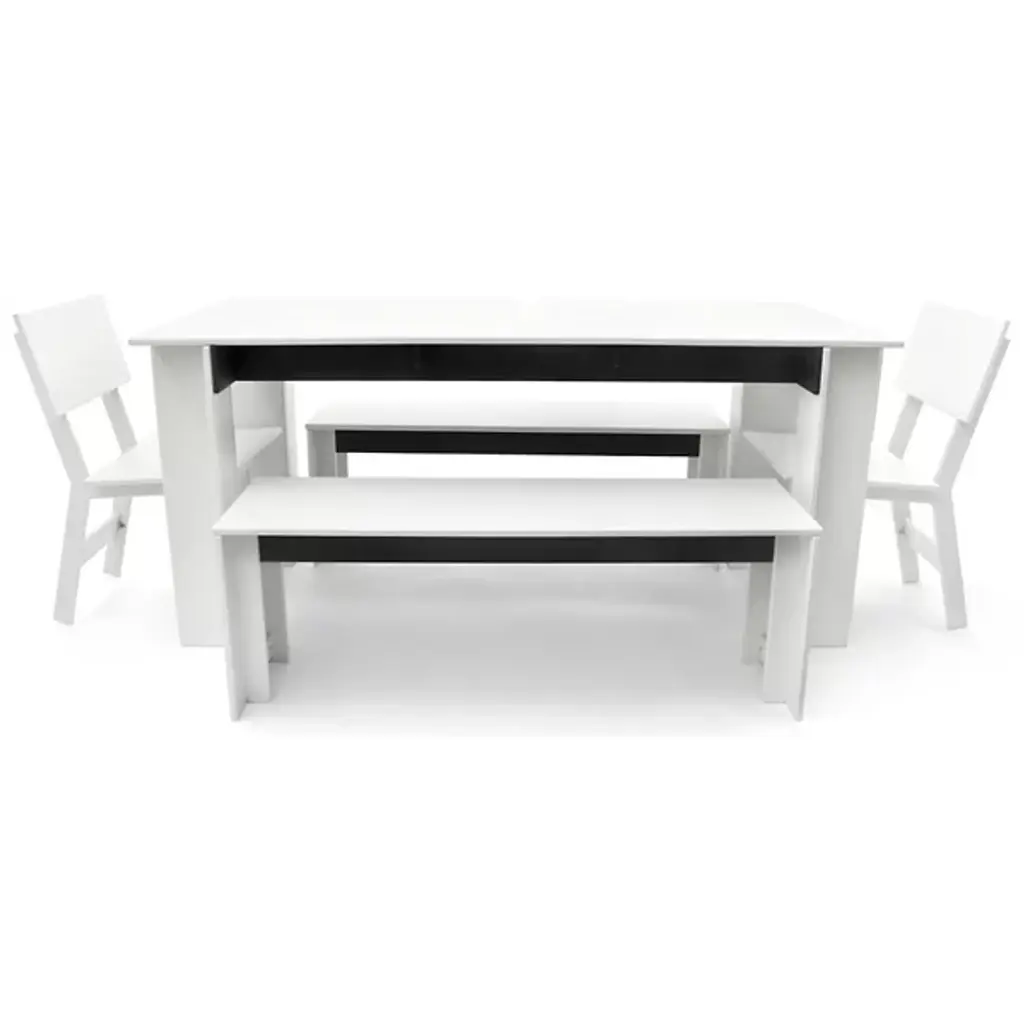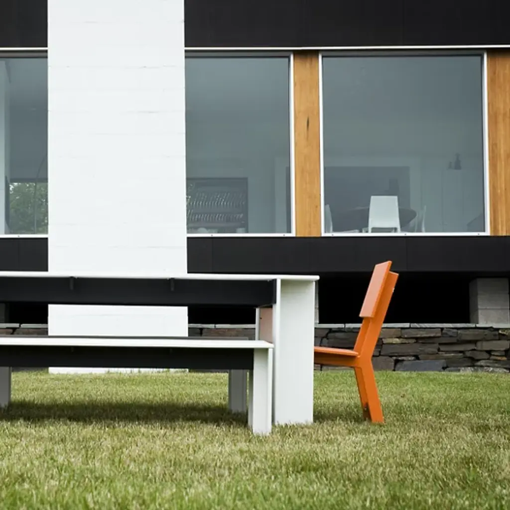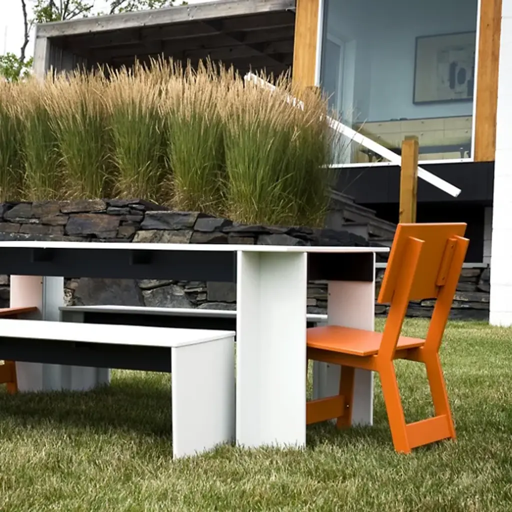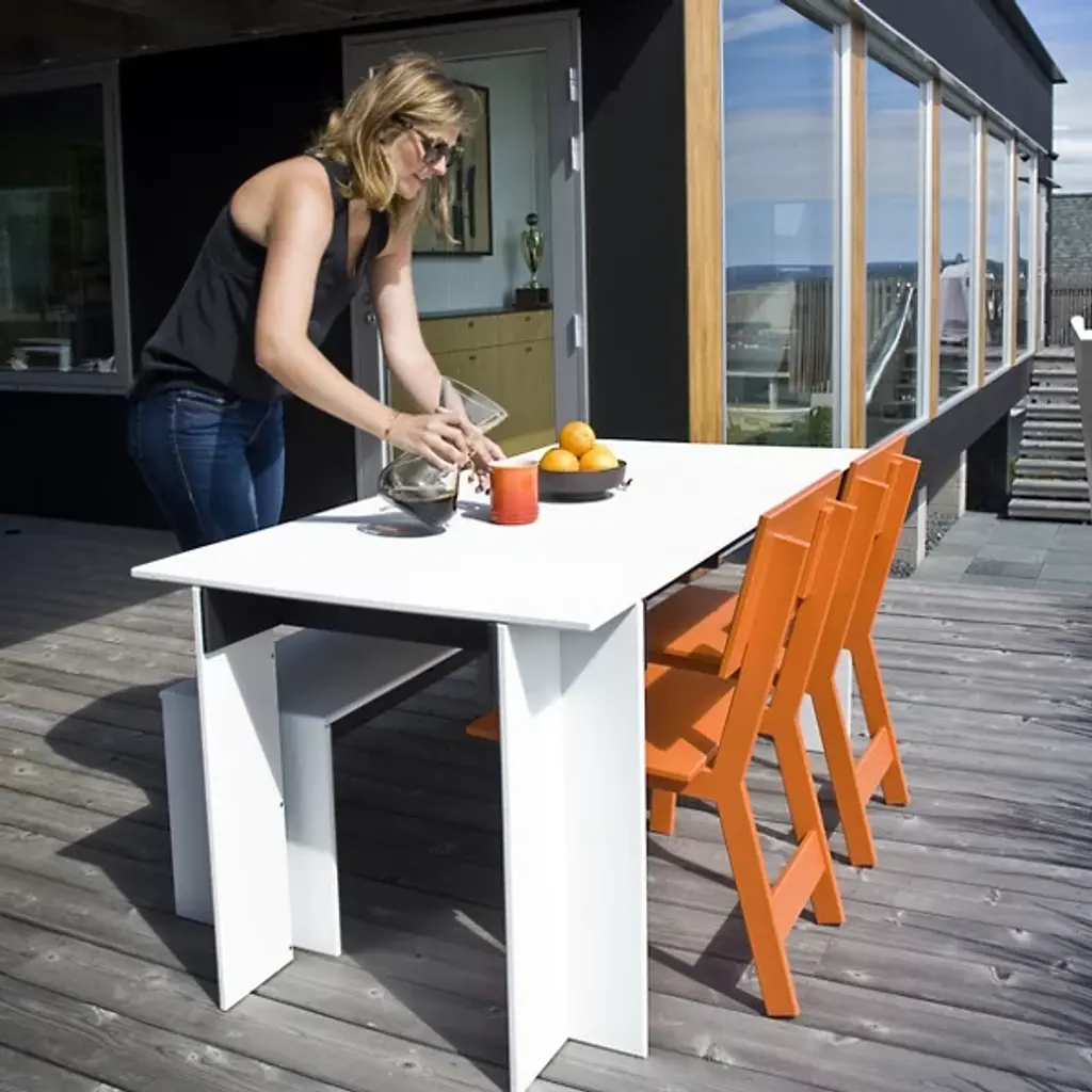 A compact yet comfortable chair for stylish outdoor dining. Designed by David Salmela, the Loll Designs Emin Outdoor Dining Chair has a versatile modern form that will fit in with the rest of the Salmela or any other Loll Designs dining set. It is made out of recycled milk jugs and non-recycled HDPE, and comes in a rainbow of colors.