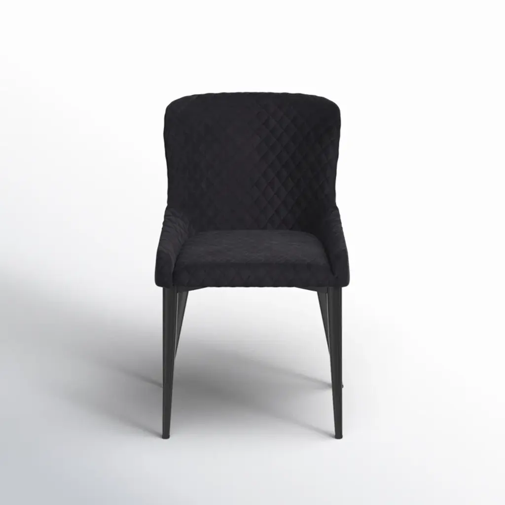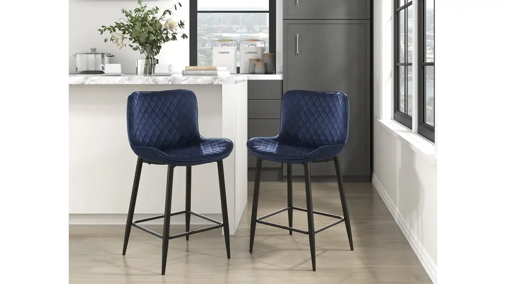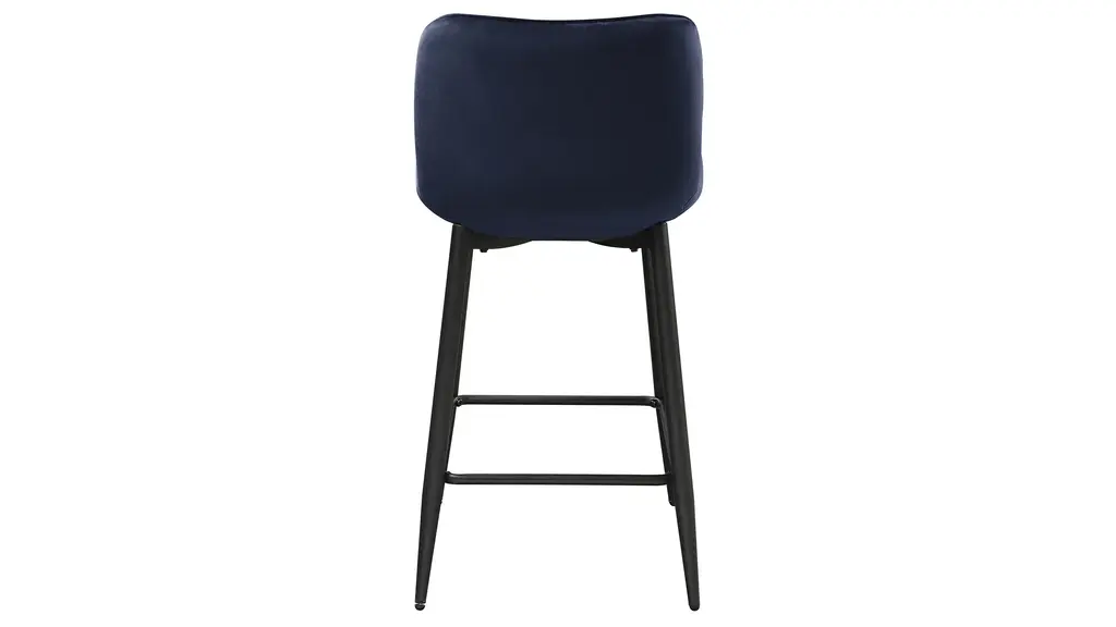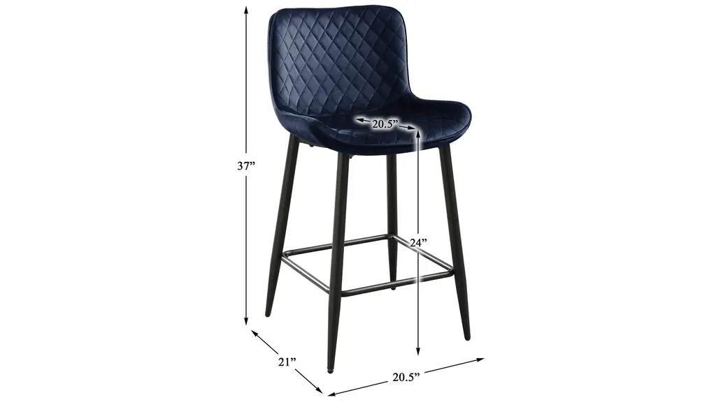 Emmeline Counter Height Chair is serving as the perfect complement to your modern casual dining space, the Emmeline Collection pairs with your existing counter or bar tabletop. The available 24-inch height chair features a seat which is covered in dark blue velvet fabric upholstery and is supported by black metal legs. The diamond stitch pattern of the seat further lends to the modern aesthetic of the piece.
