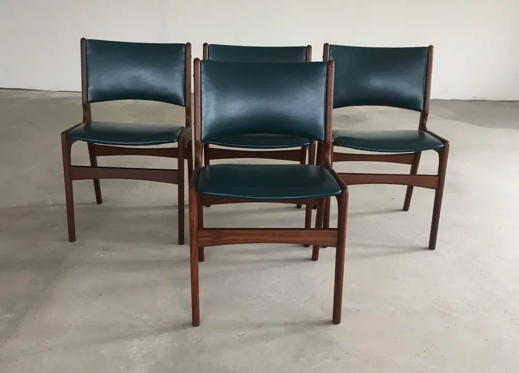 Erik Buch Four Fully Restored Costumizable Danish Teak Dining Chairs