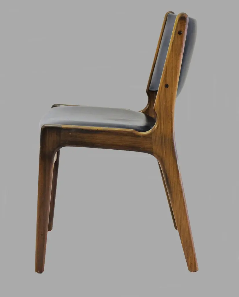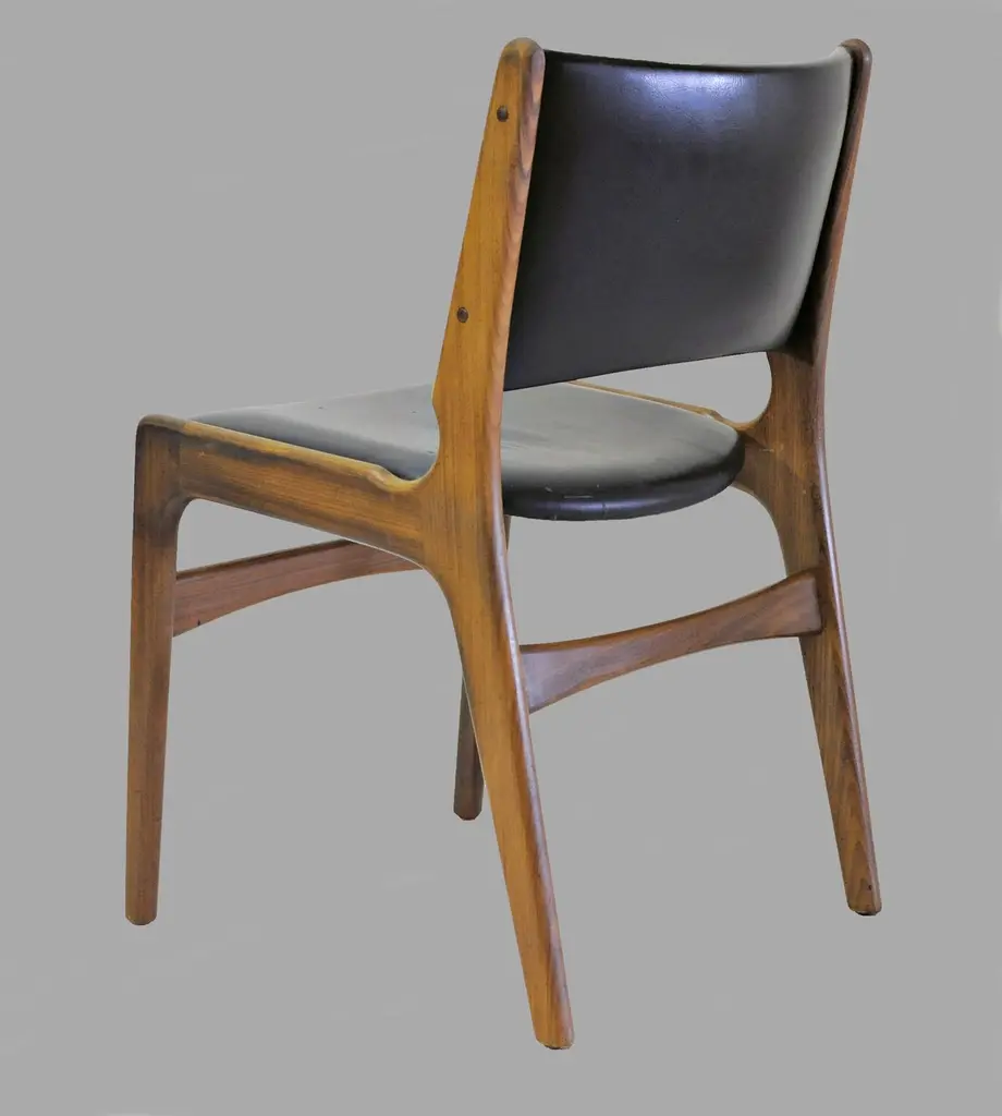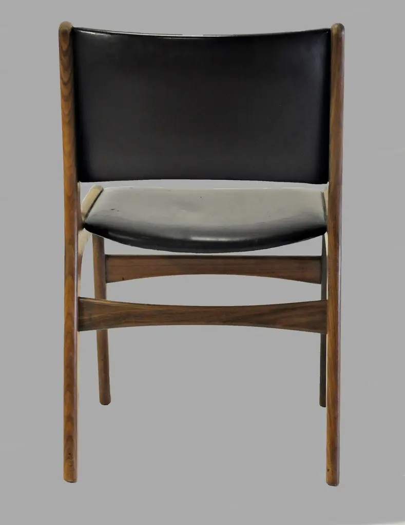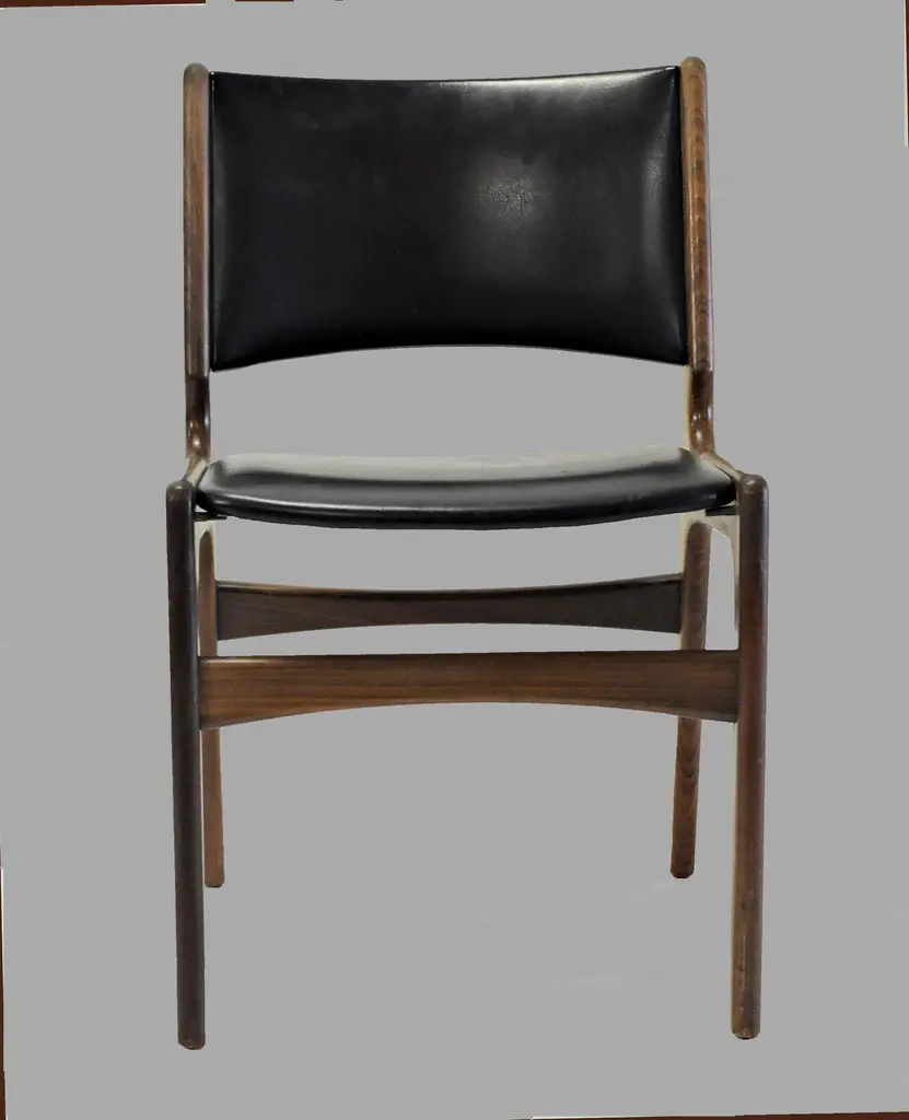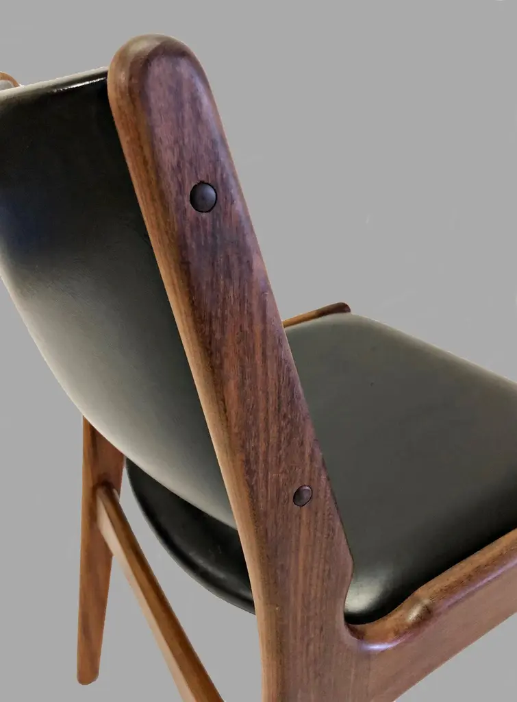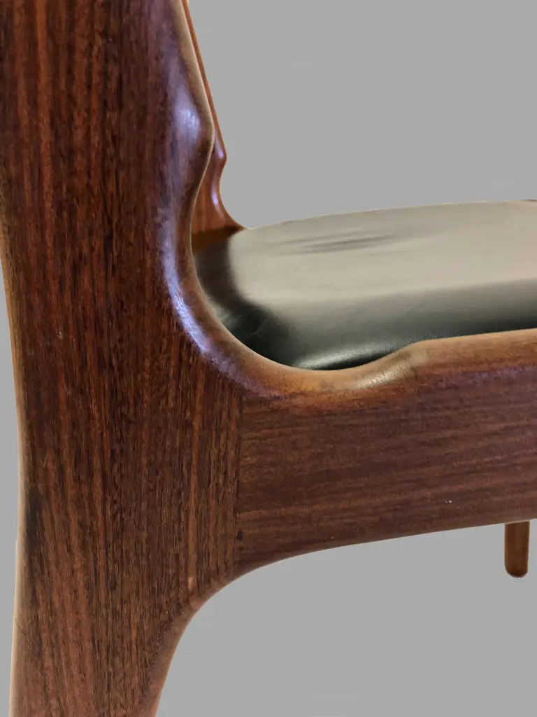 Erik Buch Restored And Refinished Danish Teak Dining Chairs With Black Leather