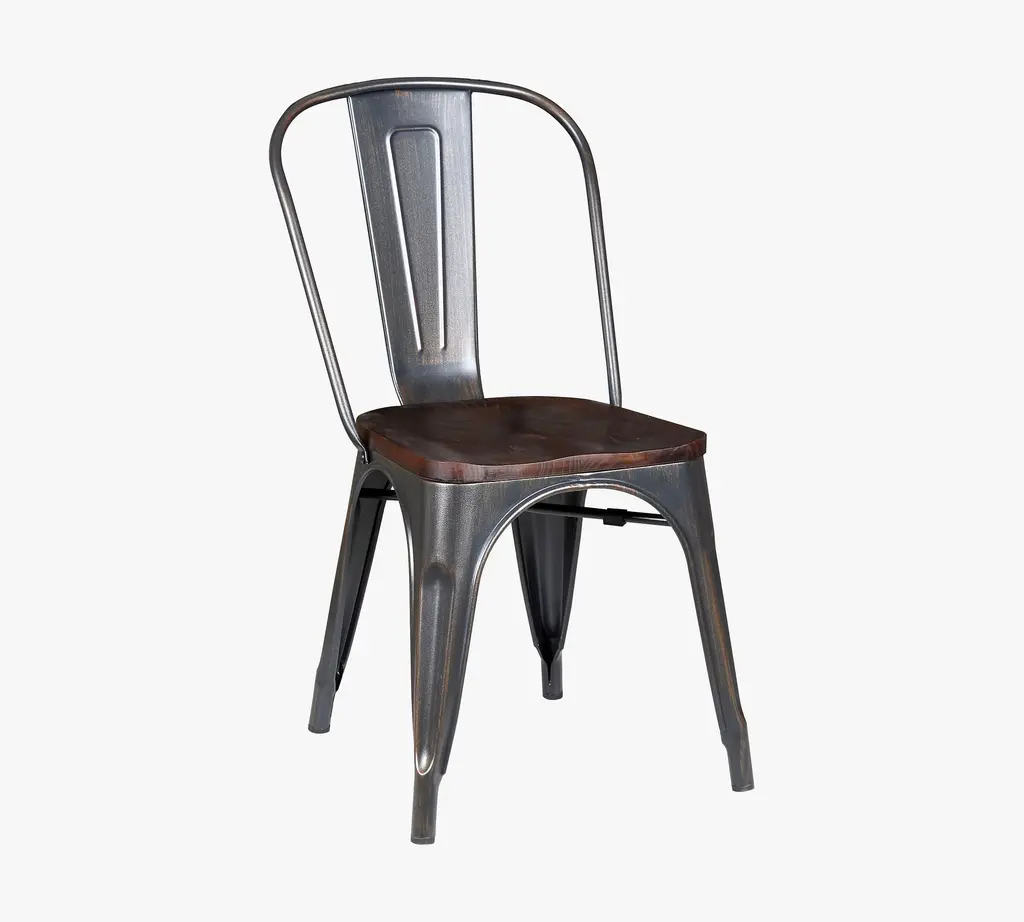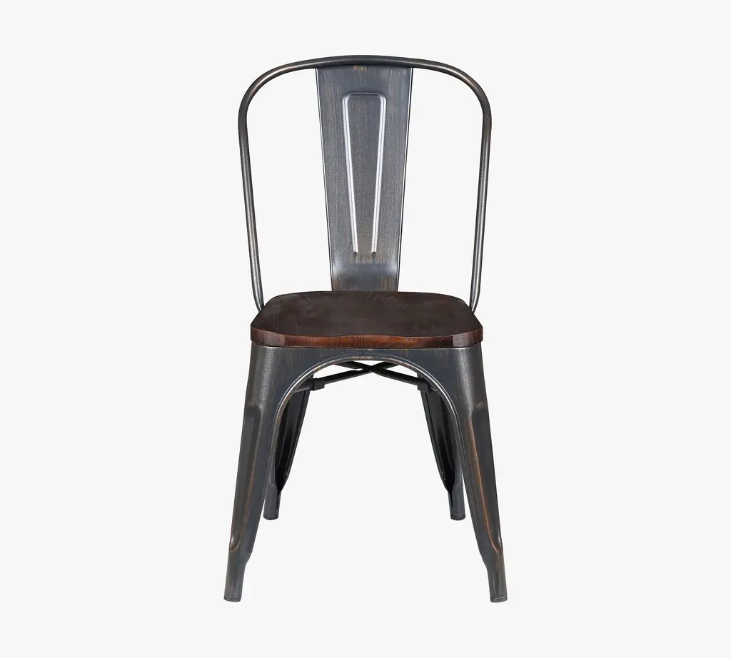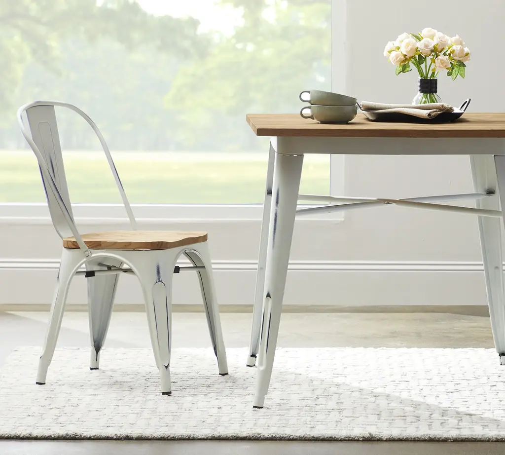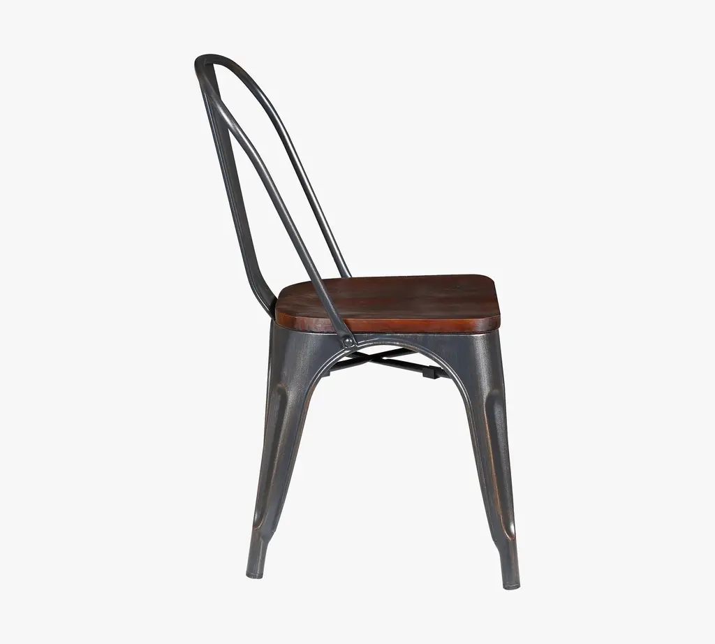 Brimming with modern industrial charm, this stackable set of dining chairs are durably crafted of powder coated steel and elm wood. Have them at the ready for when it’s time to entertain, they’re the ultimate small-space dining solution.
