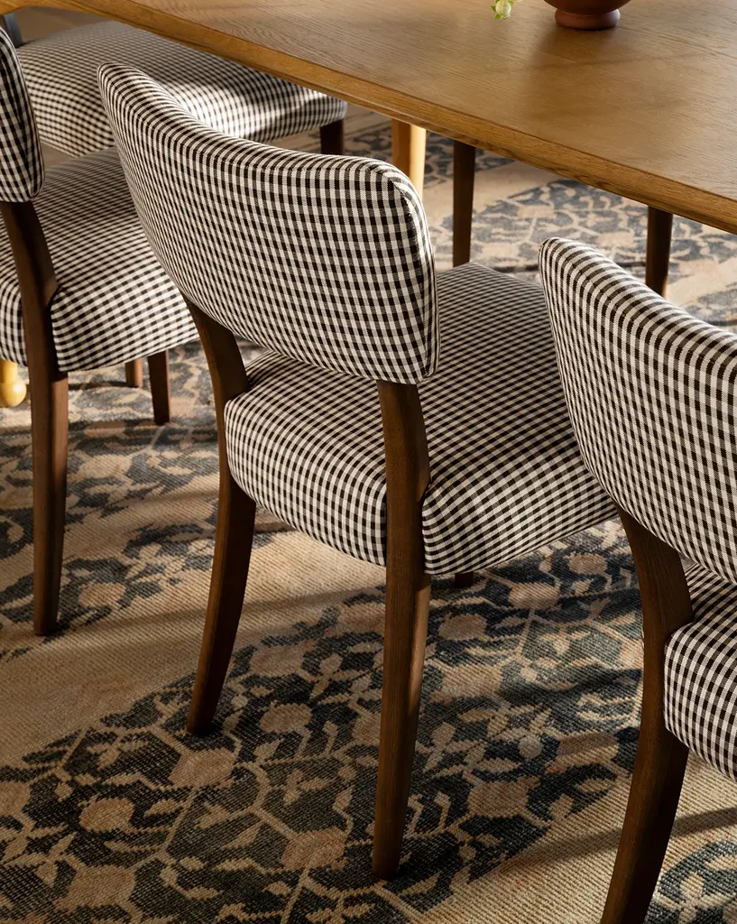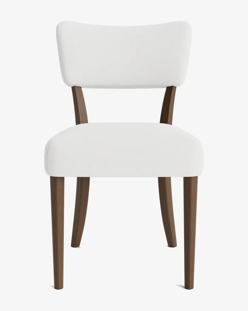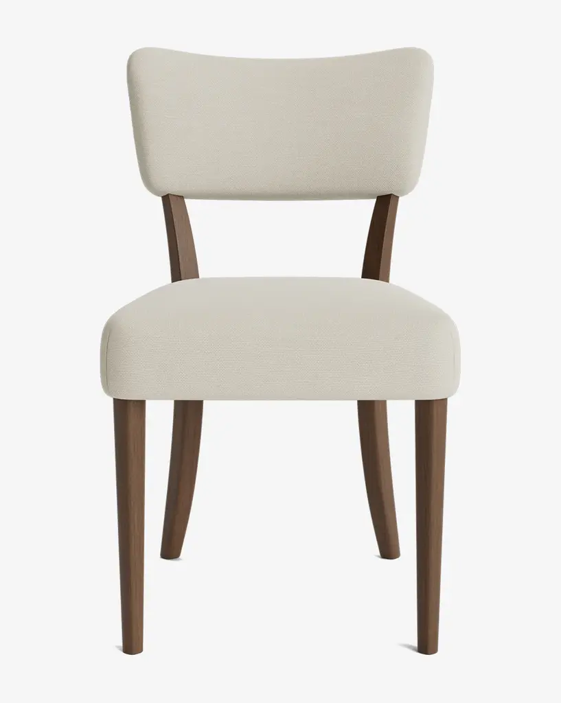 Vintage inspired and artfully designed, our Etienne Dining Chair is a timeless staple for your dining room styling. With a classic form, the chair features tapered square legs and a soft curve on the top and bottom edge of the back. The chestnut wood finish offers a rich warmth and the plush seat cushion caters to comfort. Customizable in a wide array of fabrics, you can make this made-to-order piece entirely your own.