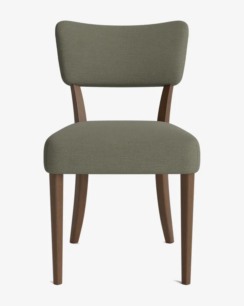 Vintage inspired and artfully designed, our Etienne Dining Chair is a timeless staple for your dining room styling. With a classic form, the chair features tapered square legs and a soft curve on the top and bottom edge of the back. The chestnut wood finish offers a rich warmth and the plush seat cushion caters to comfort. Customizable in a wide array of fabrics, you can make this made-to-order piece entirely your own.