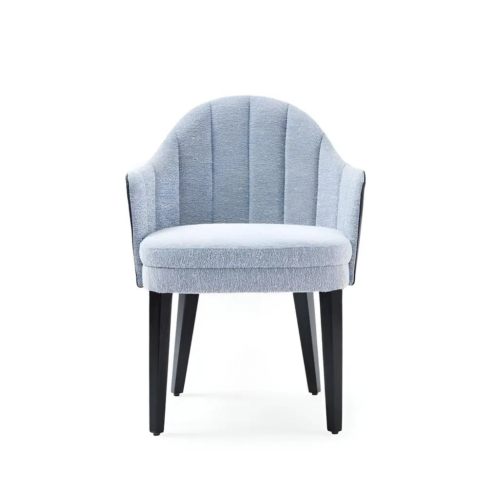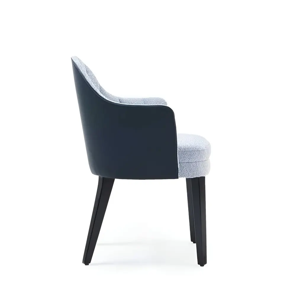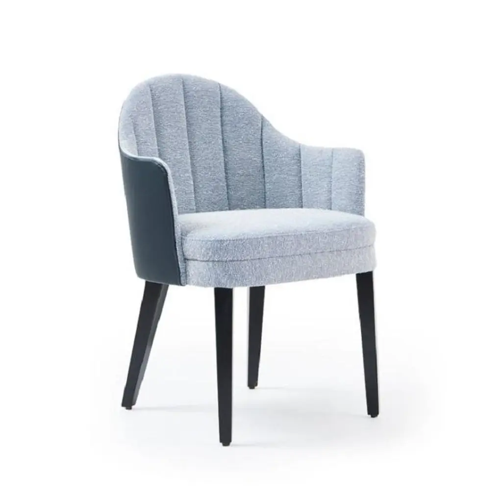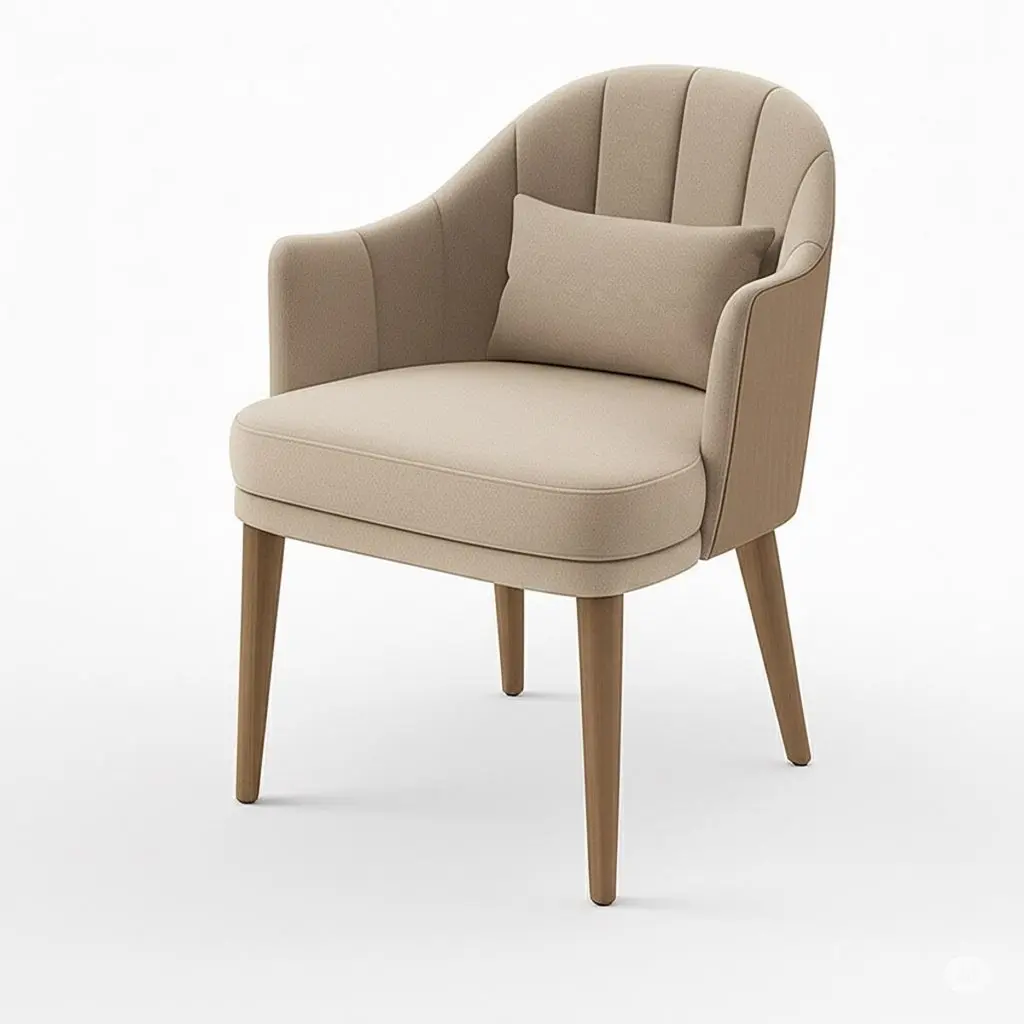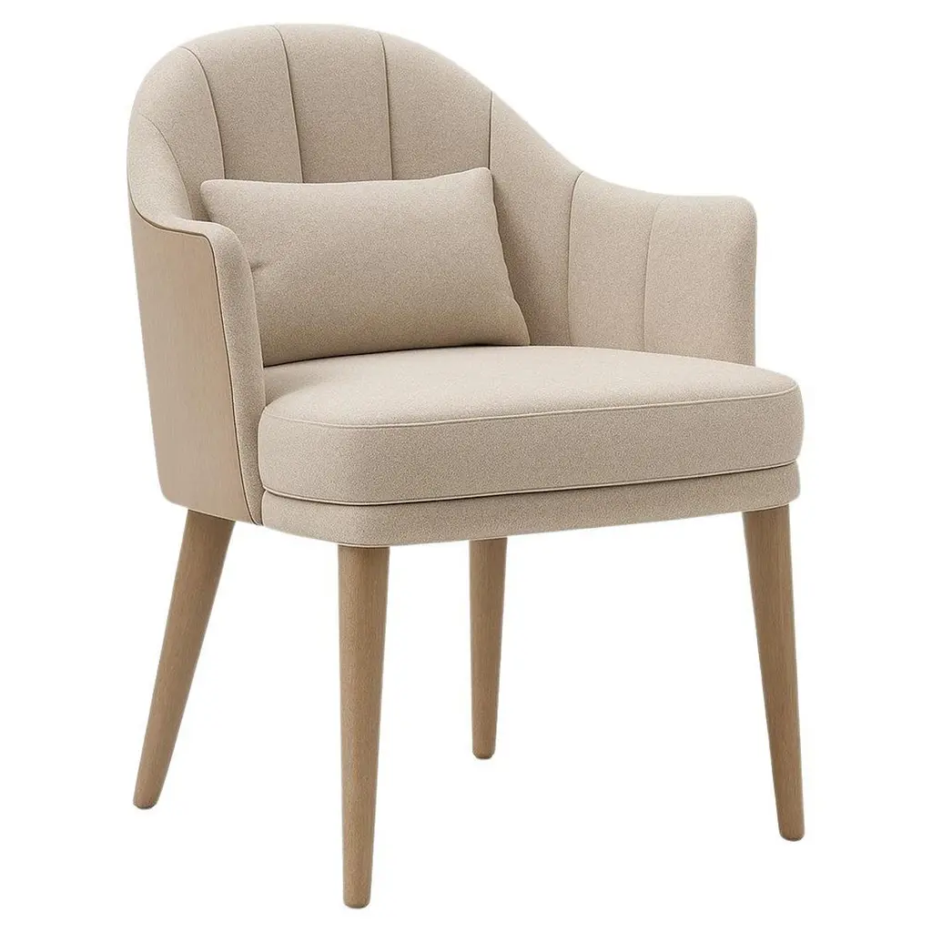 This exquisite armchair presents a harmonious blend of sleek modern design and natural elegance. Its defining features include a generously upholstered seat and back, providing exceptional comfort and a plush aesthetic. The graceful curves and thoughtful tailoring of the upholstery contribute to its sophisticated silhouette. Complementing the soft, inviting fabric is a warm Ash wood finish, which beautifully frames the piece and forms its sturdy, tapered legs. The natural grain of the Ash wood adds an organic touch, creating a striking contrast with the refined upholstery and ensuring this armchair stands out as a stylish and comfortable addition to any contemporary living space or sophisticated study.Contact us to enquire about COM/COL production, requirements and material shipping instructions.Please contact us if you have any questions about customization and pricing. We will be glad to check with the factory’s technical team if sizes, finishes, and colors can be customized. We do our best to expedite production and to ship and deliver product within the listed lead time, however current lead times might be longer due to global shipping backlog and delays. These delays are out of our control and cannot be a reason to cancel an order.