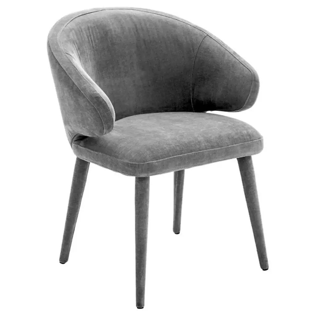 The Fabio Dining Chair is a masterpiece of modern elegance, designed to elevate any dining space with its sophisticated allure. Its sleek, curved steel frame exudes a sense of timeless grace, while the barrel-style seat invites you to indulge in comfort. Upholstered in luxurious polyester velvet, this chair is not just a piece of furniture, but a statement of style and refinement. The Fabio Dining Chair promises to be the perfect companion for intimate dinners and lively gatherings alike, offering a blend of beauty and functionality that is simply irresistible.
