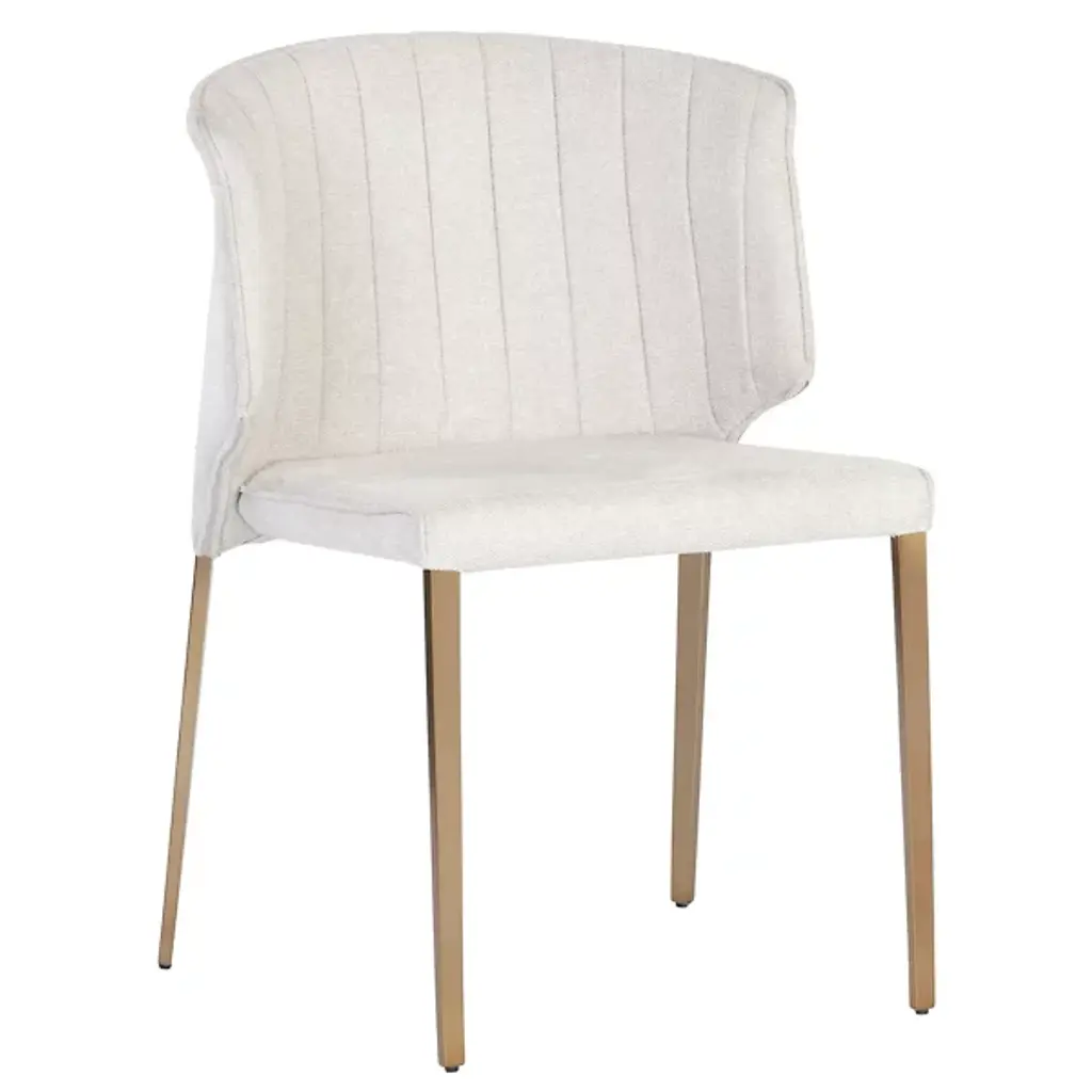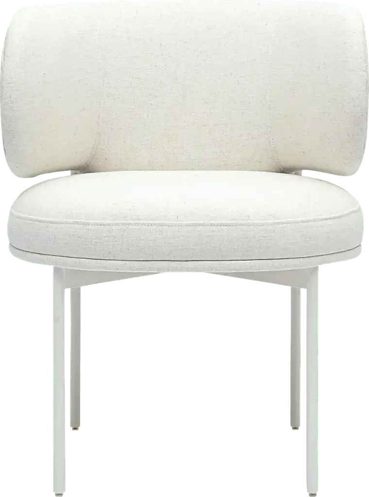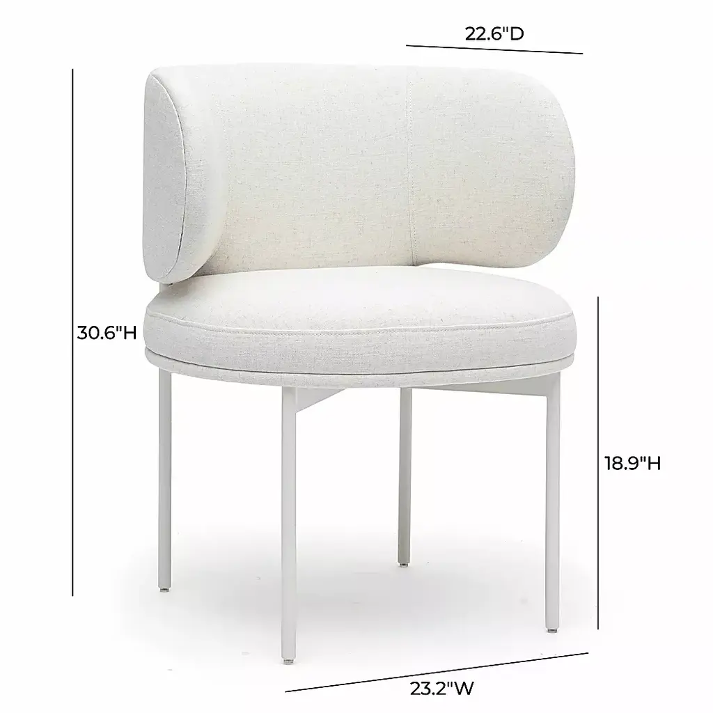With retro curves and a sculptural metal frame, the Fairyhive cream dining chair makes a strong statement at the table. Wrapped in upcycled linen, its foam-padded back brings both comfort and polish.
