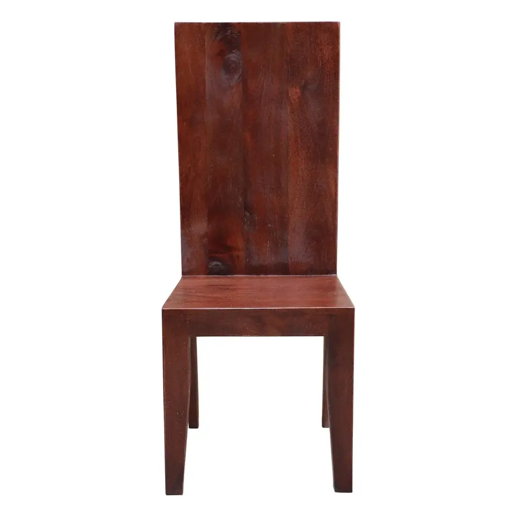 Dimensions: 18” wide X 20” deep X 46” high Seat Dimensions: 18”wide X 18” deep X 17.5” from floor Irresistibly stylish, this Paisley carved dining chair is a mix of old world with modern day. This elegant solid wood chair is enhanced with delicate hand carved paisley motifs on the back that will serve as the focal point in any dining room. Each motif is hand carved by skilled artisans using the tools and craftsmanship passed on to them by their ancestors. This sturdy yet designer chair is made from solid Mango wood, which is sourced sustainably. Finished by skilled artisans in a hand rubbed dark walnut stain, this chair will pair perfectly with a modern or transitional dining table. Features: • A rare piece and only one of its kind available • 100% solid Mango wood dining chair • Handmade by skilled artisans • Hand carved paisley motifs on back • Transitional elegant style chair • Environmentally friendly and sustainable • Piece shown in the photos is the one which will be shipped The listed dimensions are measured from one extremity to the other, height-wise and width-wise. Please contact us for specific dimensions. Construction: 100% Solid Wood Please note that the color of products shown may vary slightly from their actual color due to monitor display settings or photography studio lighting.