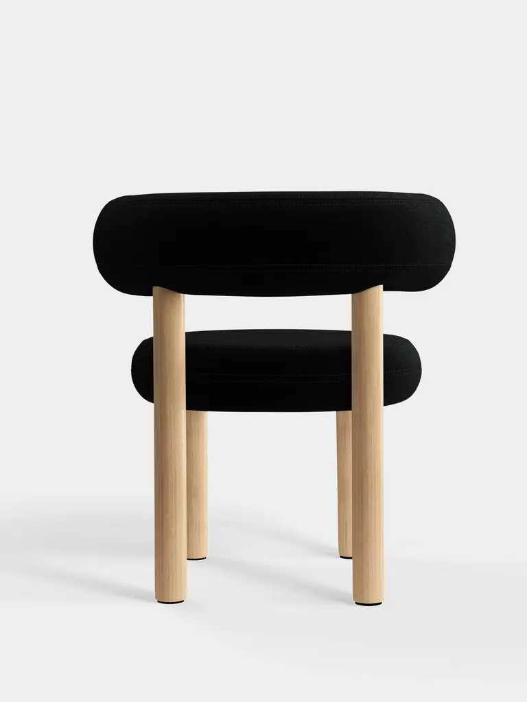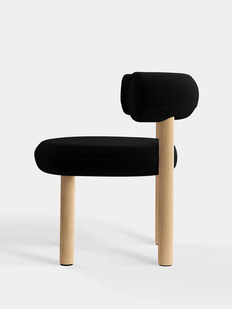 Fat Dining Chair | Brushed Natural Wood & Black Kvadrat Hero 2 Wool | Tom Dixon