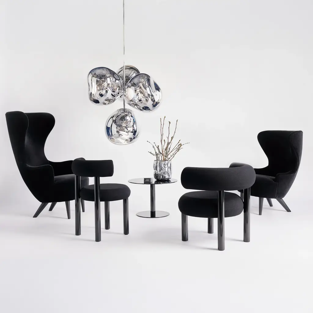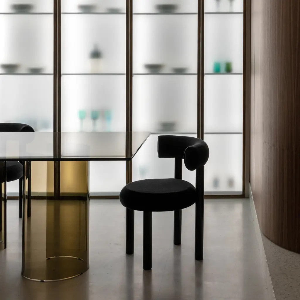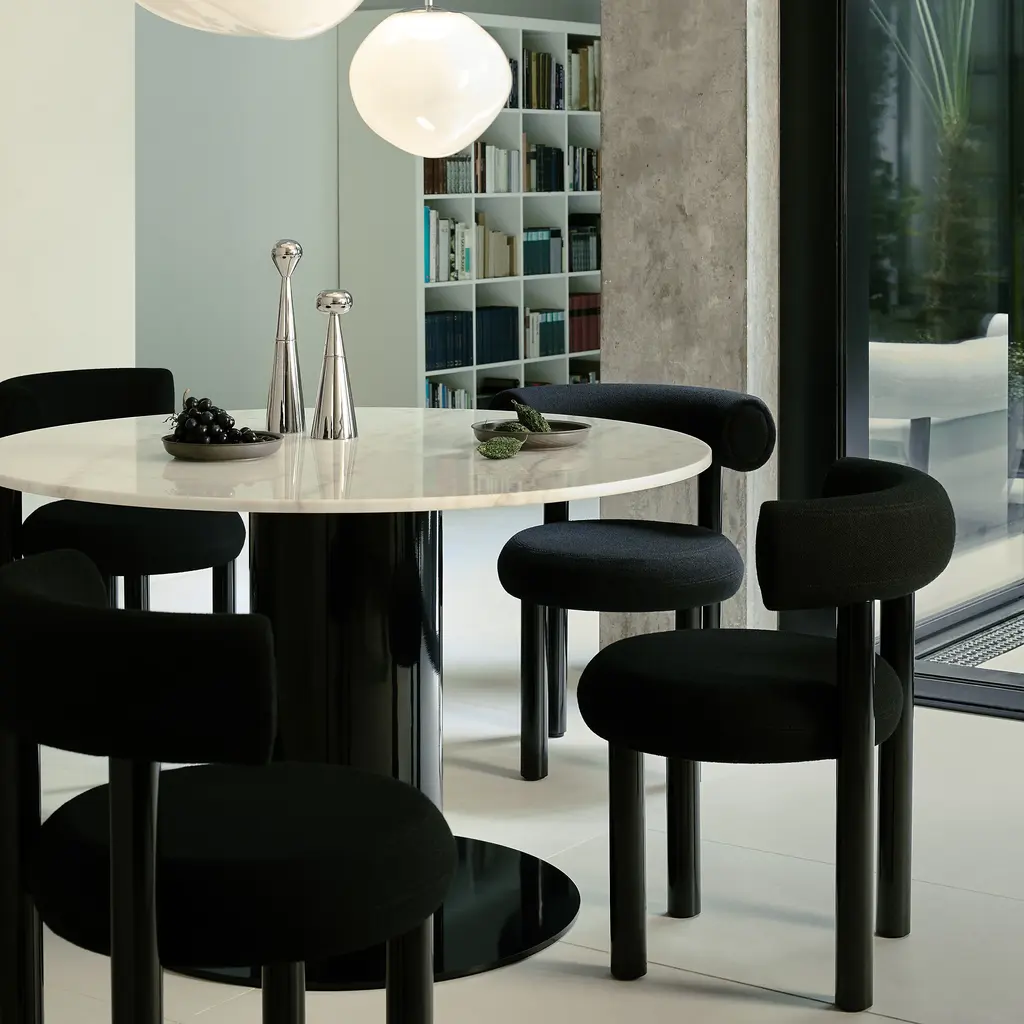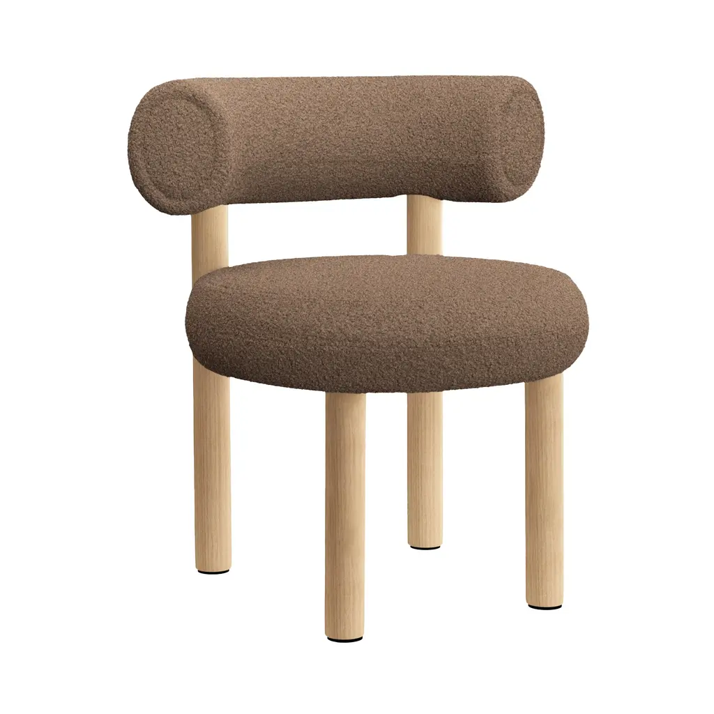 Designed for comfort in multiple sitting positions, this dining chair features a molded foam structure supported by solid oak legs in black or natural finishes. Expertly upholstered in a curated range of high-performance fabric.
