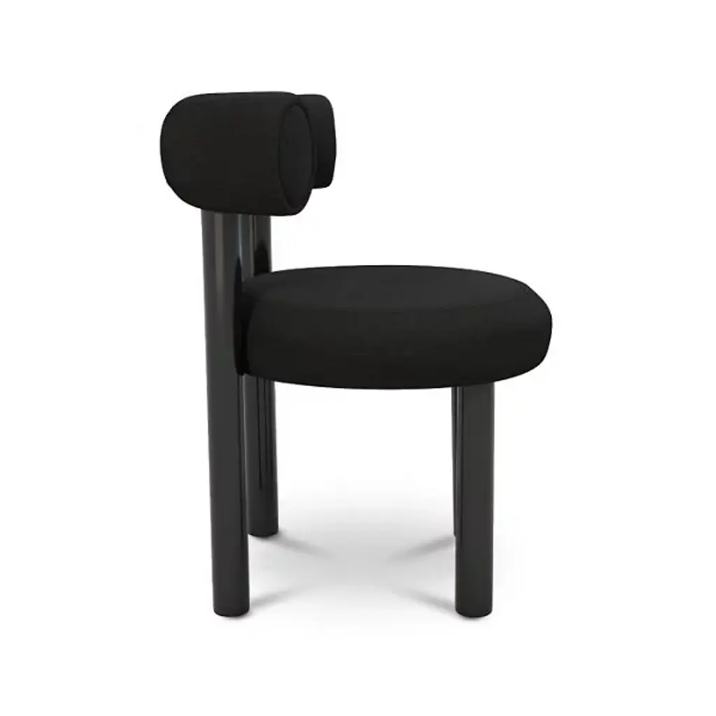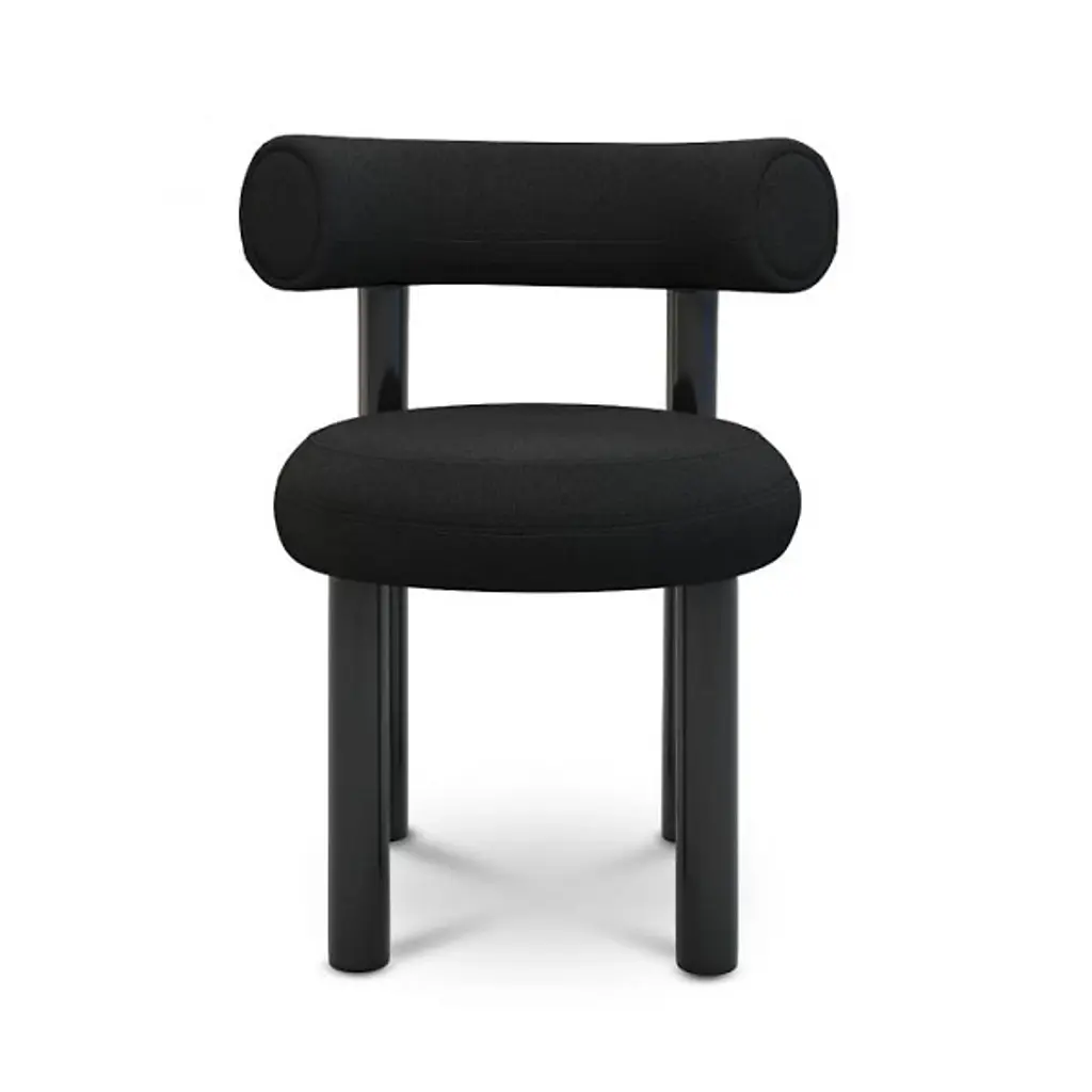 Make a soft and stylish addition to your inside spaces with the fabulous, flexible design of the Fat Dining Chair from Tom Dixon. Made in Europe and hand-finished by artisans, it relies on four columnar metal legs to support a soft puck seat with a beveled edge, while a curving backrest caps off the carefully engineered comfort. The matte material stretched over foam upholstery contrasts well with the glossy finish of the metal support structure, creating an enduring elegance.