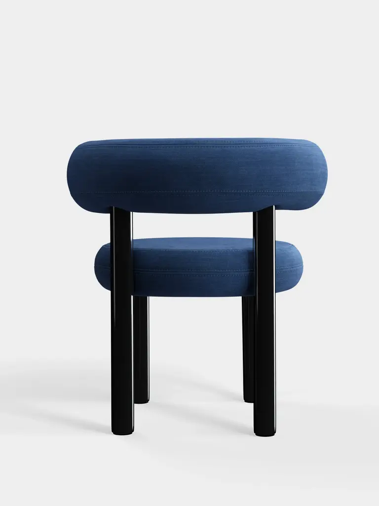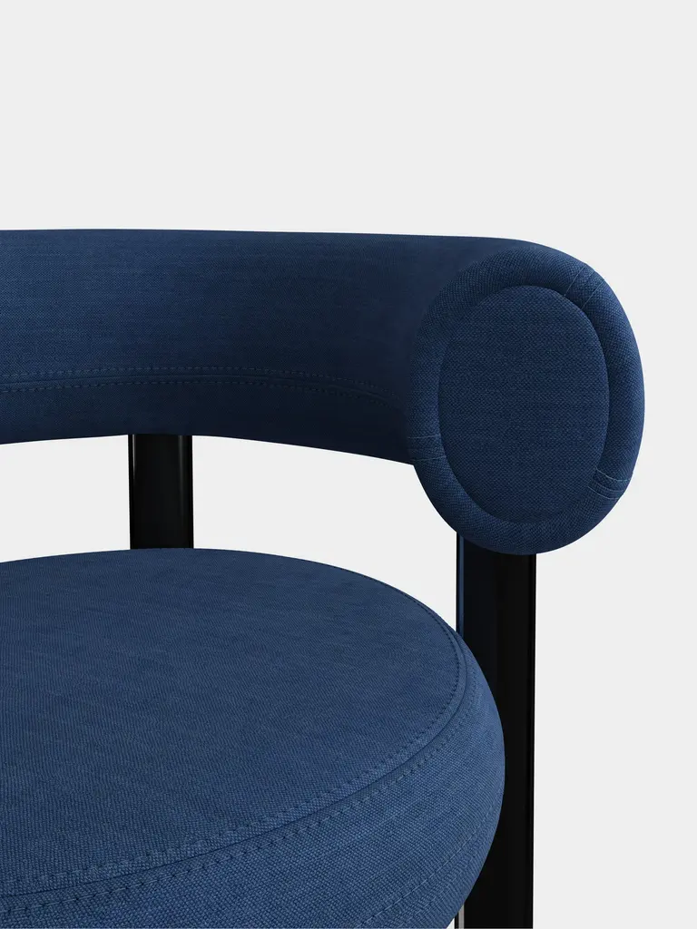 Fat Dining Chair | Polished Black Steel & Indigo Linara Linen | Tom Dixon