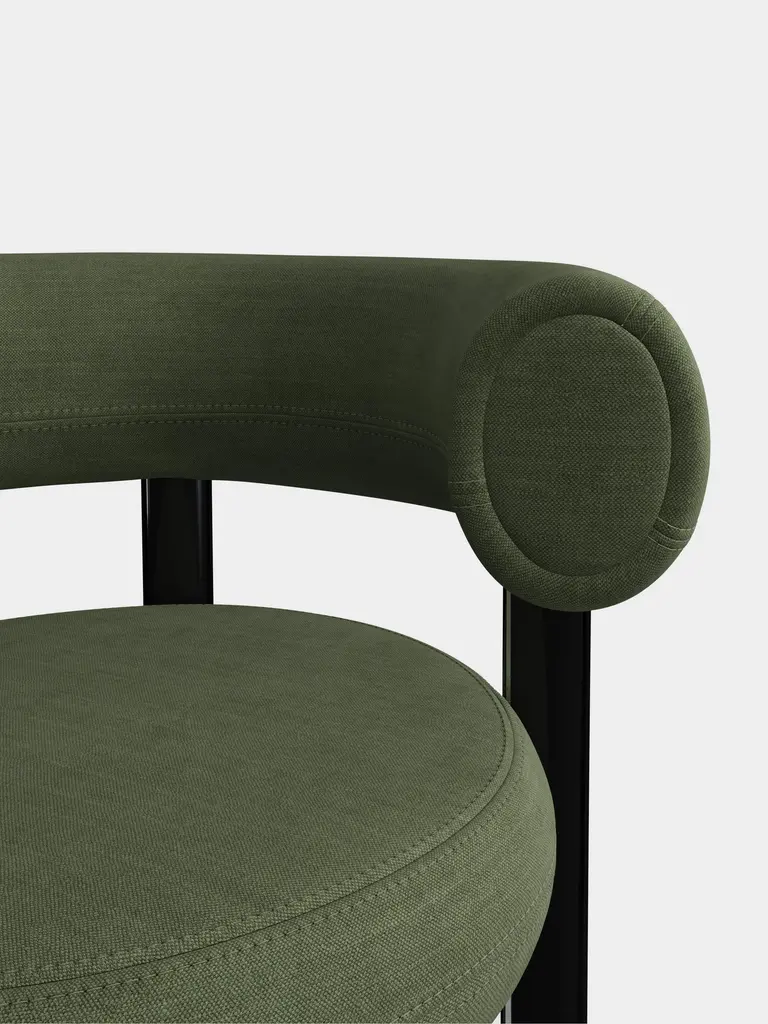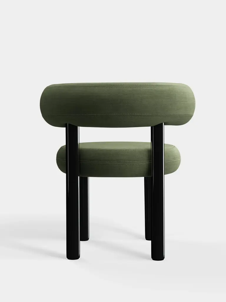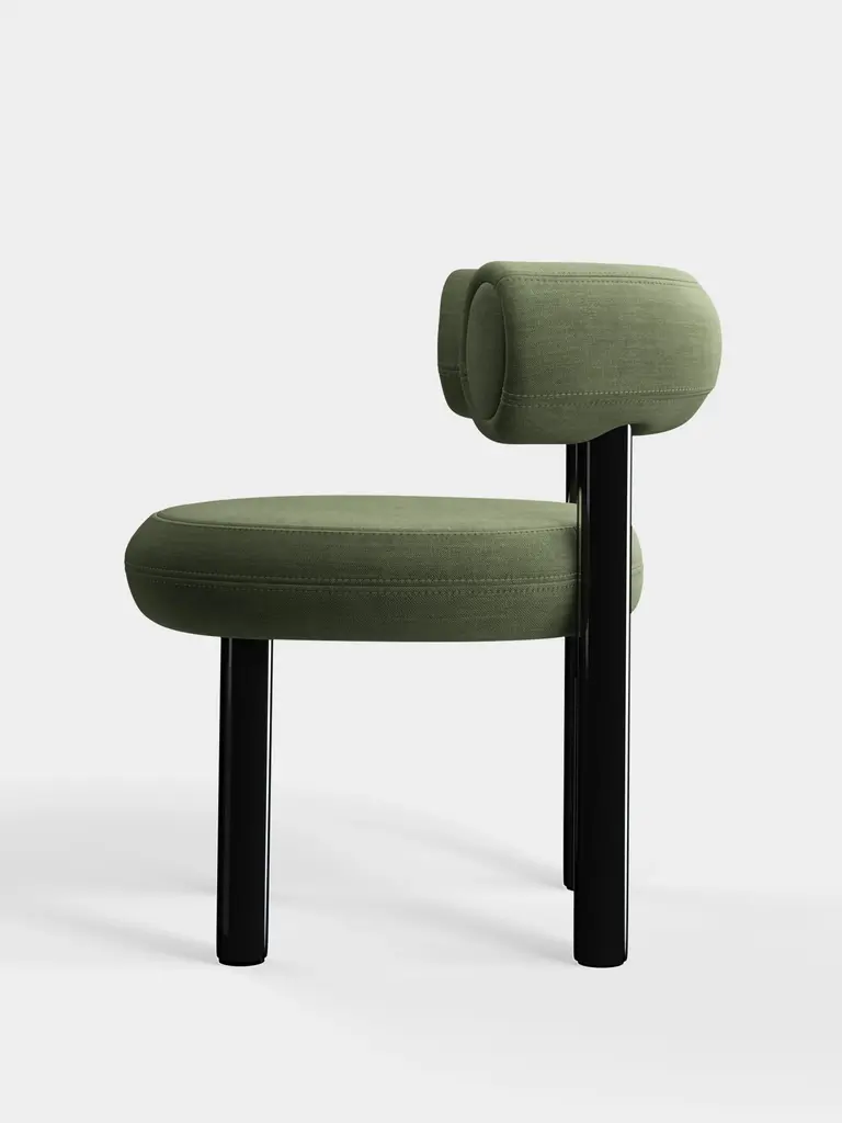 Fat Dining Chair | Polished Black Steel & Tarragon Linara Linen | Tom Dixon