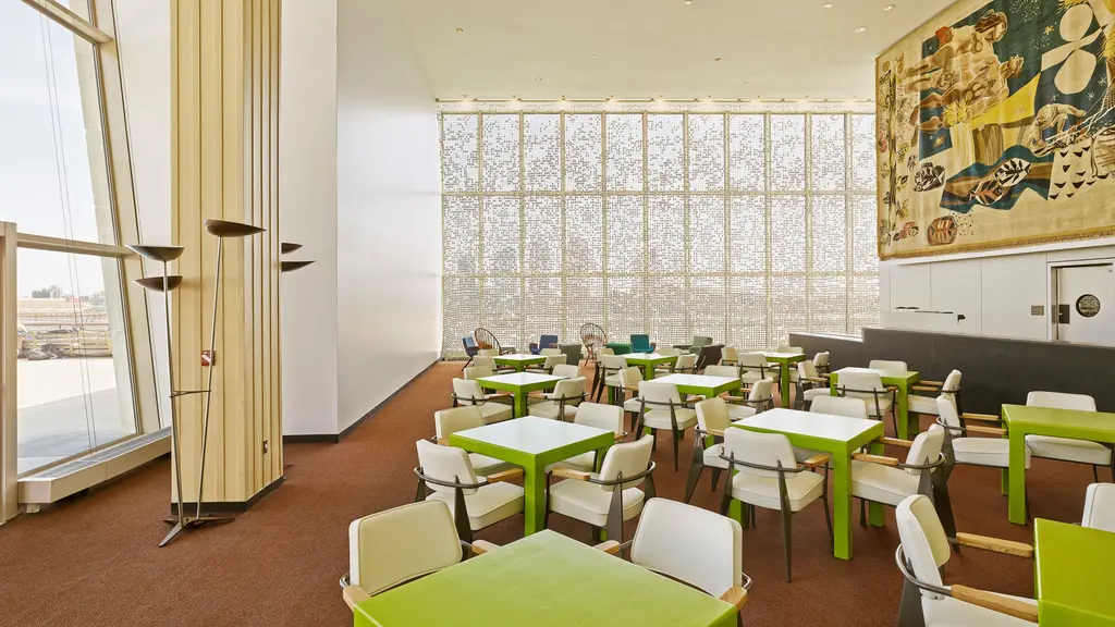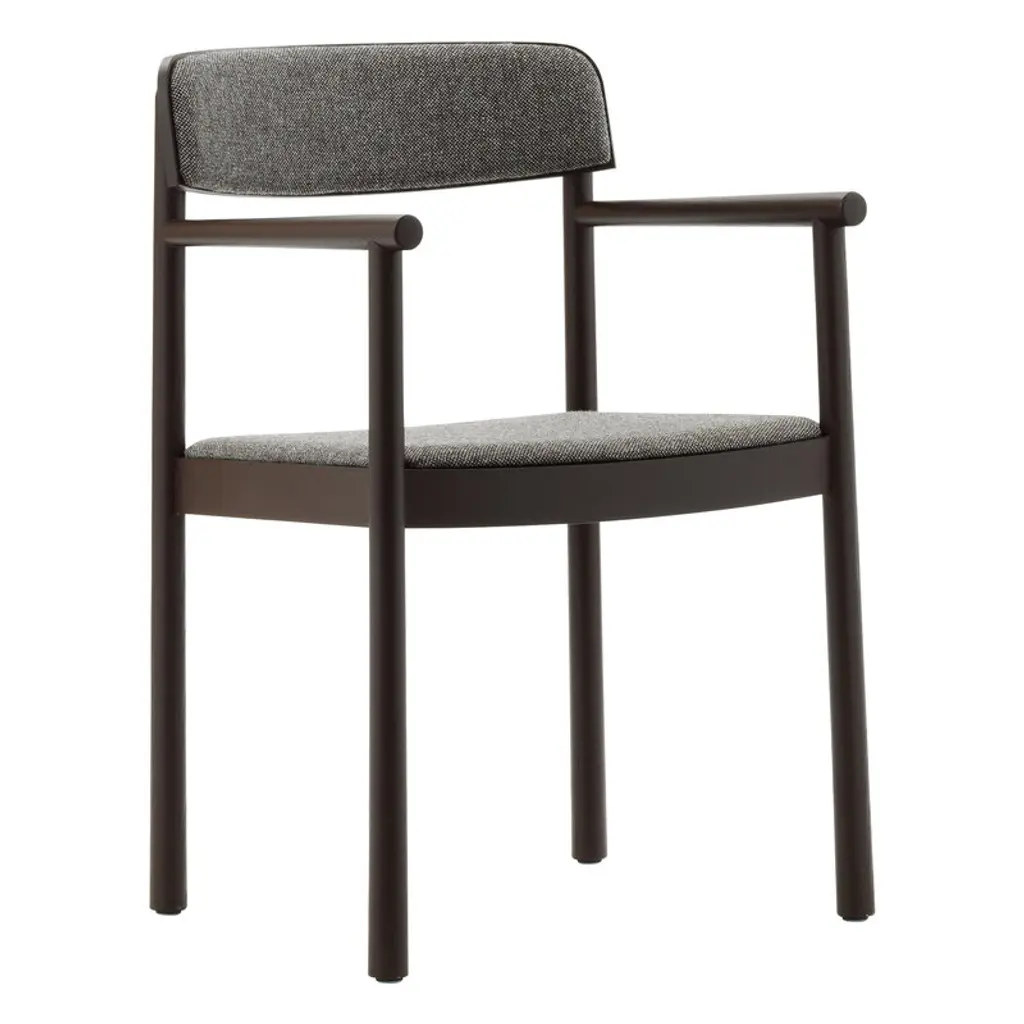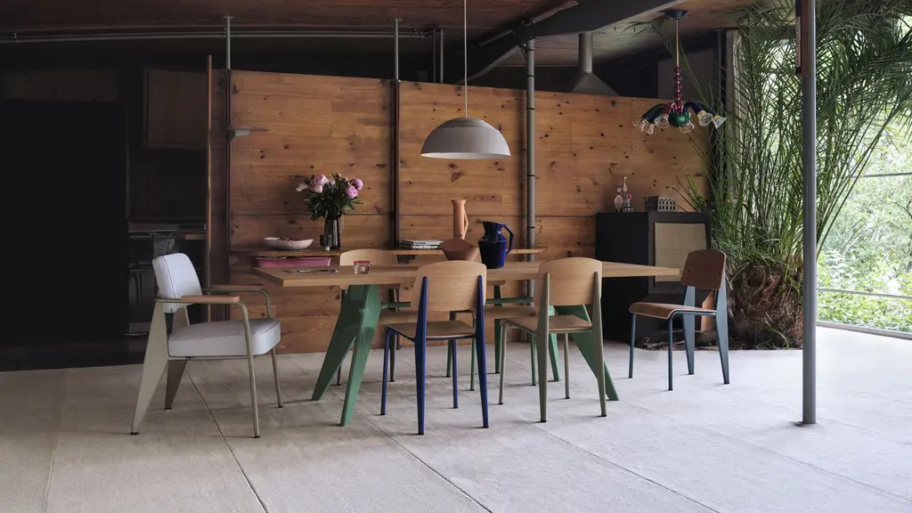 Fauteuil Direction is especially suited for dining room seating or as an armchair in home offices. The design reflects Jean Prouvé's characteristic aesthetic vocabulary, which is based on structural requirements. The comfortably upholstered armchair is available with fabric or leather covers in a selection of different colours.