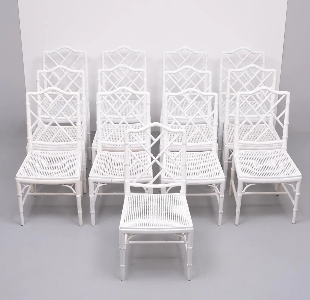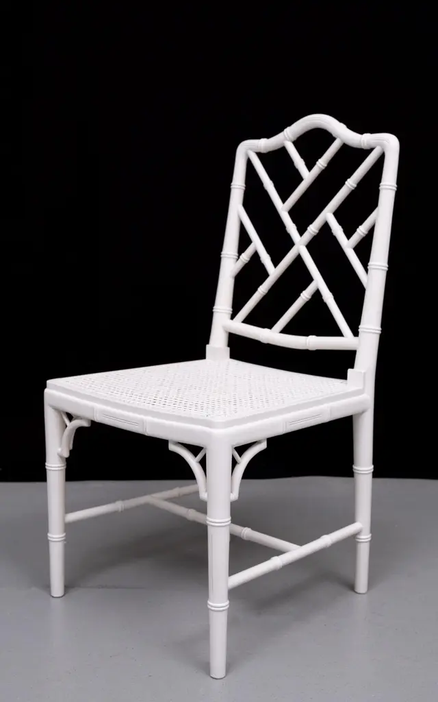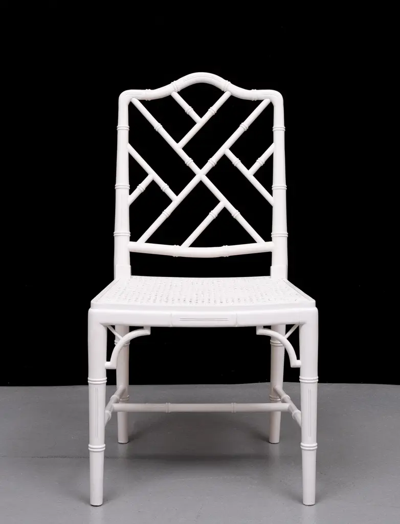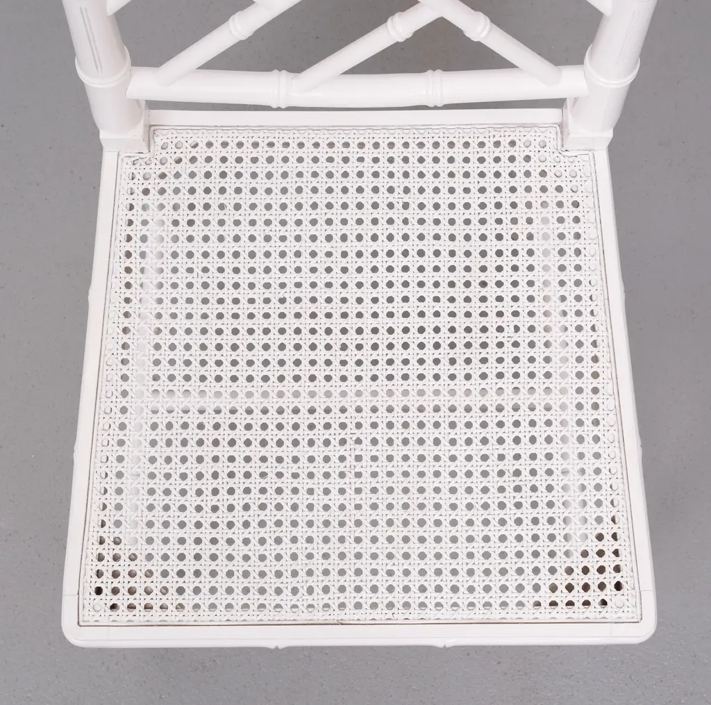 Wonderful Faux Bamboo dining chair. Timeless design fits in almost every interior . Wicker seat . Bright White color . 1970s