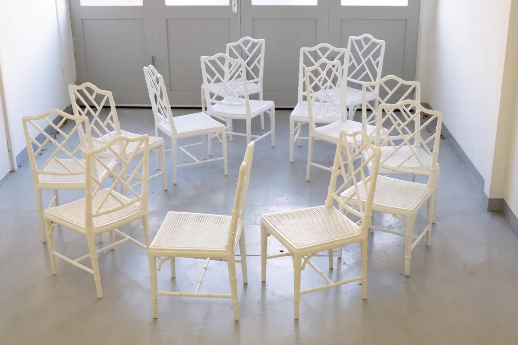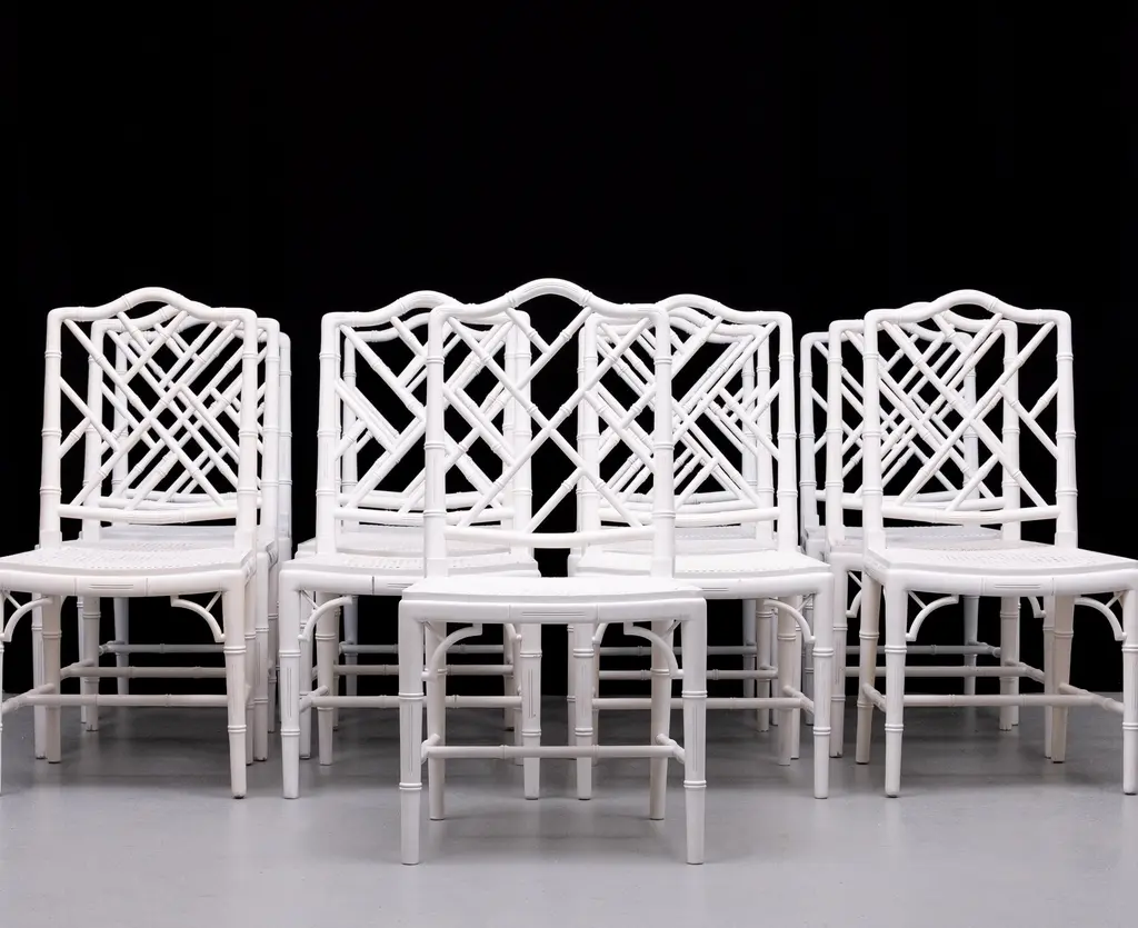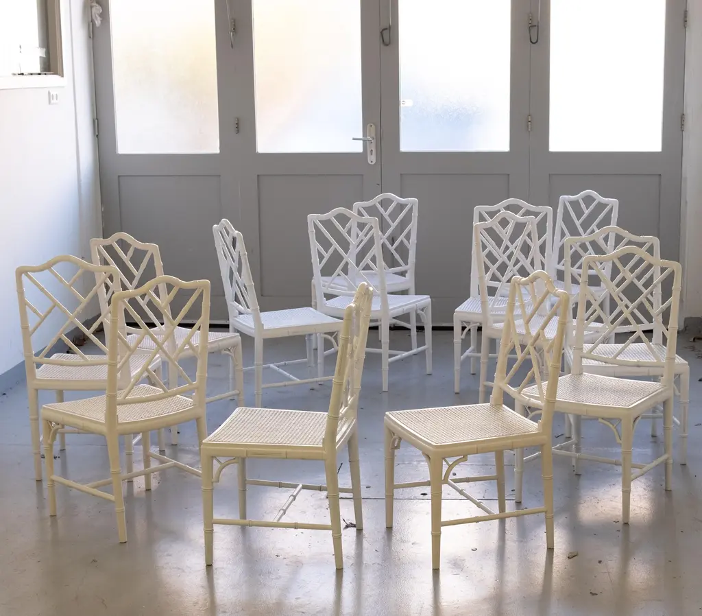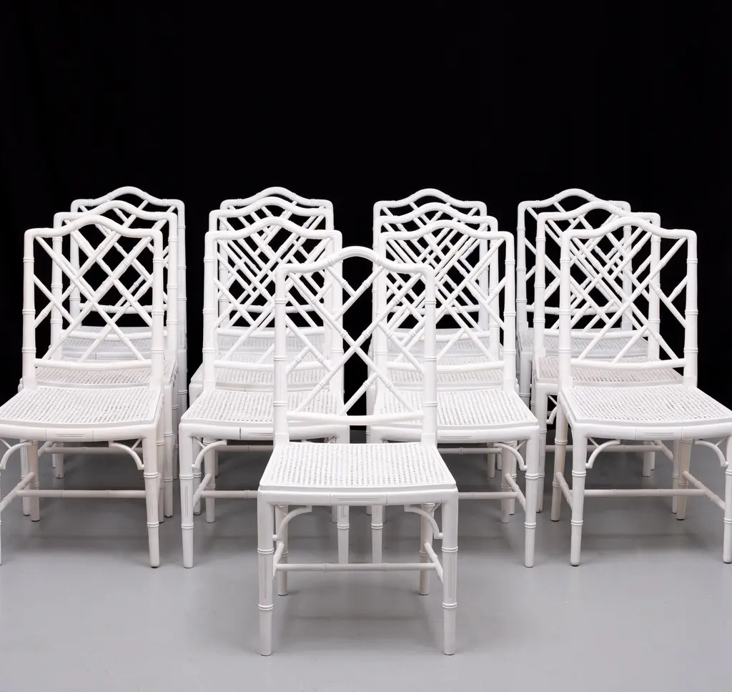 Wonderful Faux Bamboo dining chair. Timeless design fits in almost every interior . Wicker seat . Bright White color . 1970s