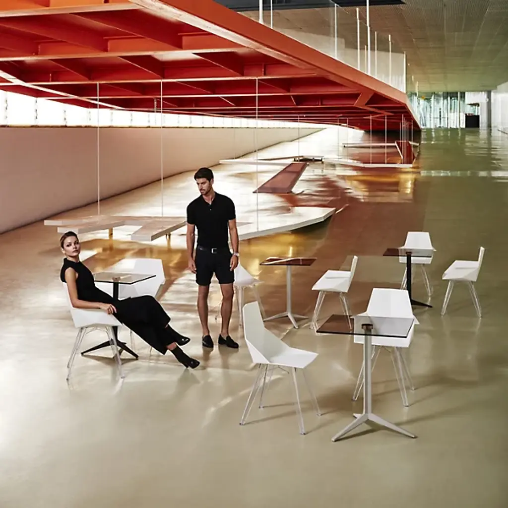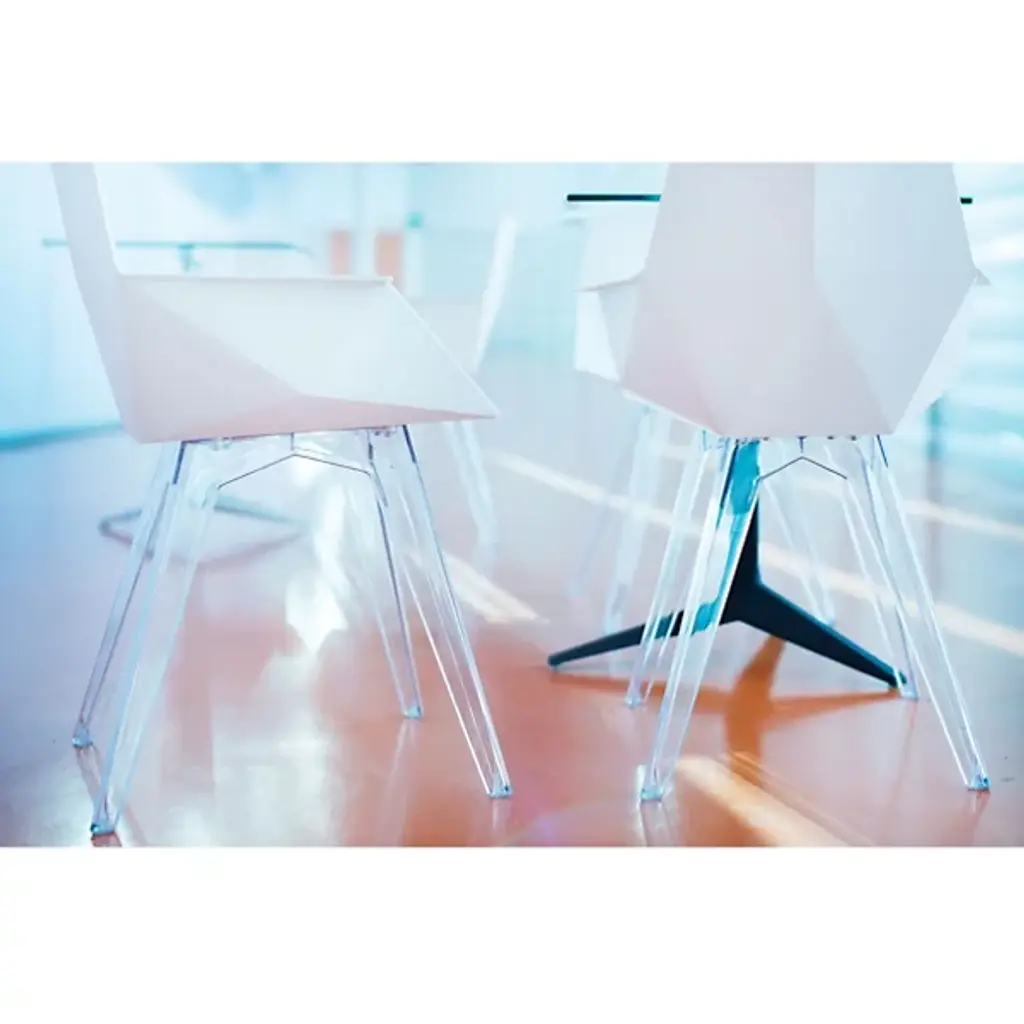 Expand your indoor and outdoor gathering spaces with stylish strength using the Faz Outdoor Side Chair Set of 4 from Vondom. An avant-garde blending of form and function engineered by architect Ramón Esteve, it fuses clear polycarbonate legs with a robust polypropylene back divided into angular subsections for an arresting and comfortable structure. The clear and sleek base contrasts well with the supportive, opaque chair seat and back, creating something instantly recognizable in any surroundings.