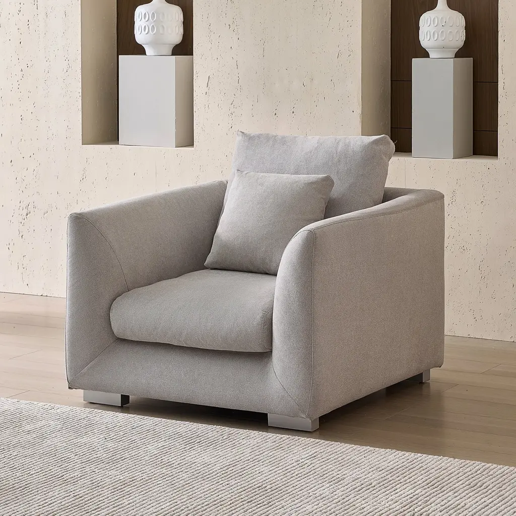 Feathers collection is my first take to creating the most comfortable sofa in the world.As the centerpiece of your house, The feathers deserve and need to have what a high-performance luxury yacht needs in mid-sea, comfort, style, and materials. The Feathers materials are similar to those I used for the X7T 170ft yacht. 7 Inch, deep memory foam, and a thin layer of GLM glue, so they stay in place forever. Then I coated it with high-performance water and stain-resistant coating on the foam and the outer fabric. Let your wine spill or your dog saliva get all around the cushions, this material is protected from all incidents. I made the feathers livable, sexy, and of course, comfortable.