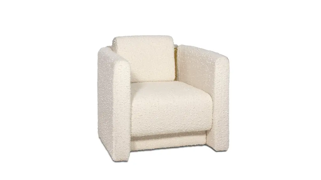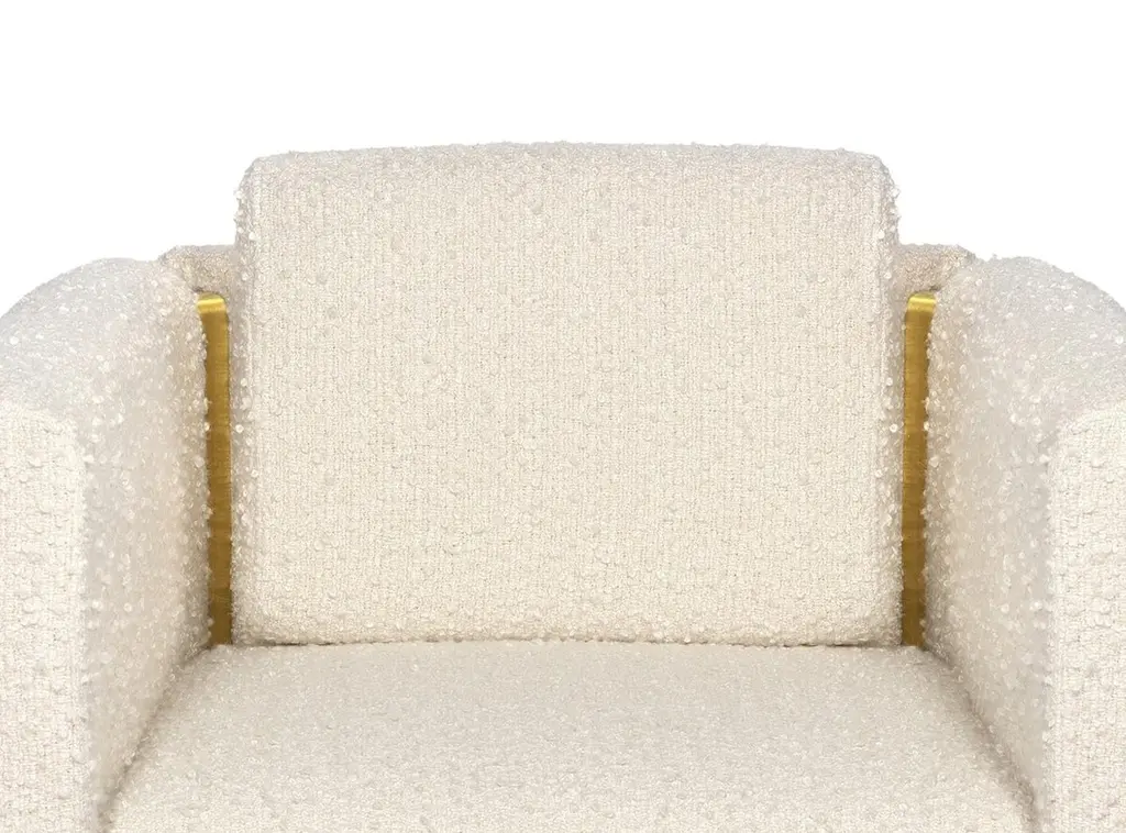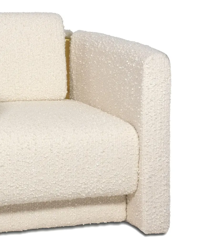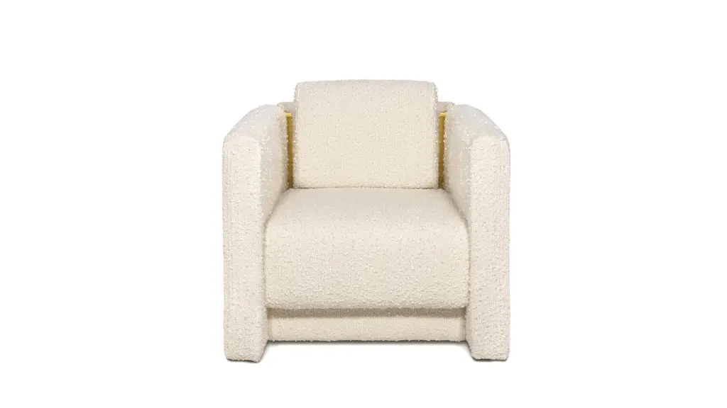 Fernandina II Armchair by InsidherLandDimensions: D 85 x W 86 x H 80 cm.Materials: Brushed brass, InsidherLand Snowfall Ref. 3 fabric.40 kg.Available in different fabrics.The Fernandine walls are a part of History that embraces the city of Porto, located in the north of Portugal. These medieval fortifications topped off by battlements were completed during the reign of King D. Fernando and their remains are part of the extraordinary beautiful scenery of the D. Luís bridge with colourful houses that paint the banks of the Douro River.Inspired by these old fortifications of Porto, the Fernandine armchair is seen from the outside perspective as a high wall that surrounds the seat. Two brass pieces stand out as cutouts that reenacts the battlements, as details that outline the structure, being also visible in the interior of the piece.Fernandine's perimeter is like the great wall, noble and brave, strong and safe, but its interior with an elevated seat and a loose cushion, becomes as comfortable and charming as the so typical well-known warm welcoming of the people from Porto.Created by Architect Joana Santos Barbosa in 2012, InsidherLand is a Portuguese brand of exclusive design. Drawn with the signature of the creator, the impressive range of contemporary luxury furniture, lighting, upholstery and accessories are connected to her personal memories and have been highlighted for their innovative and soulful designs.Joana explores several influences from travels around the world to define her own Land as a place that allows her to translate her perceptions into objects of art.The essence of InsidherLand is presented by two inspiring collections. Beyond Memory Collection is deeply influenced by organic forms of nature, legends and traditional cultures, as for the Identity Collection is molded by forms of Architecture and Art. Both collections are designed as a dialog in which nature meets strong architectural lines to create relaxed and sophisticated interiors surrounded by natural materials and meaningful art pieces.Being positioned in strategic markets of high-end luxury decoration, InsidherLand team is proud of working with the best architects and interior design studios from all over the world who seek for handmade exclusive objects that arouse emotions and stand out in exquisite spaces.We are dedicated with love and enthusiasm into every creation to surprise a sensitive but demanding public. Using the expertise of traditional craft techniques, all creations are made by the hands of Portuguese master craftsmen and jewelers who wisely sculpt them in noble materials, finalizing every detail with elegance and perfection.
