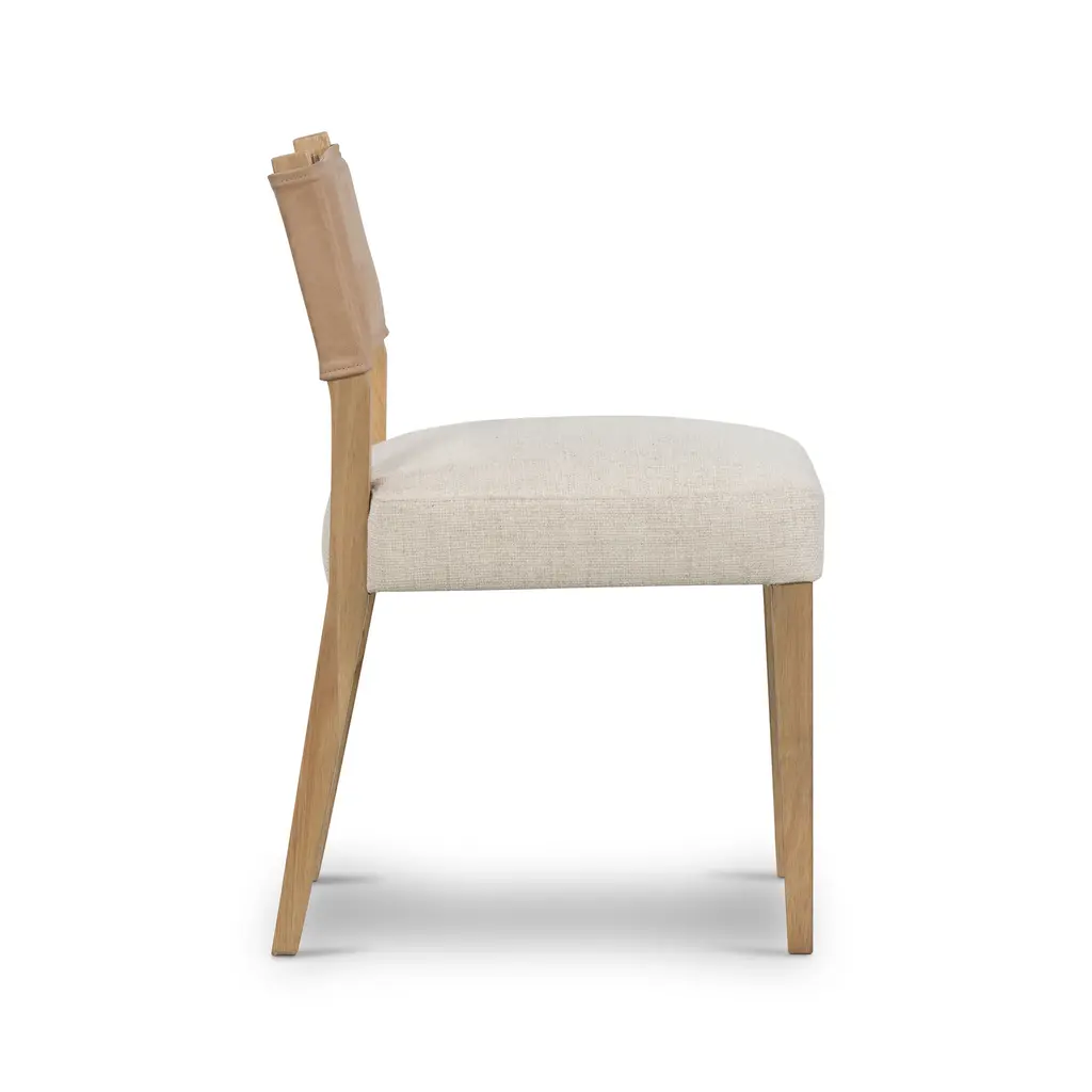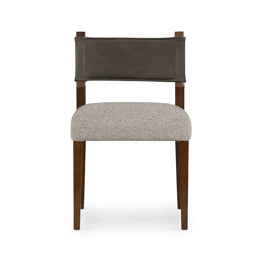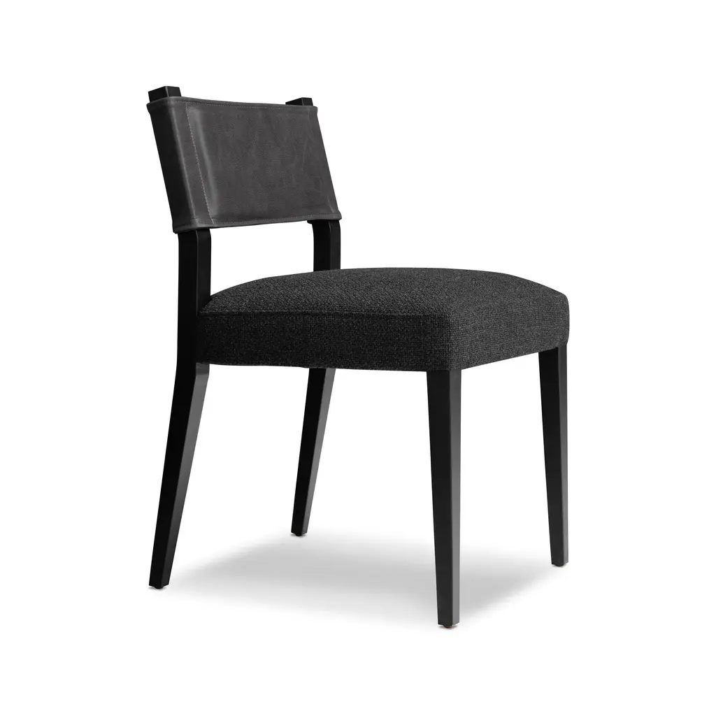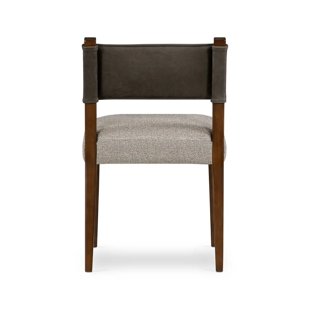 Experience a modern take on classic dining with the Ferris Dining Chair from Four Hands. Combining a bold parawood frame with luxe upholstery and top grain leather, this chair is as aesthetically pleasing as it is durable. Enjoy reliable comfort and long-term wear from the specially created high performance fabrics, that are spill and stain-resistant, ready for high-traffic use in any dining space. Highlights