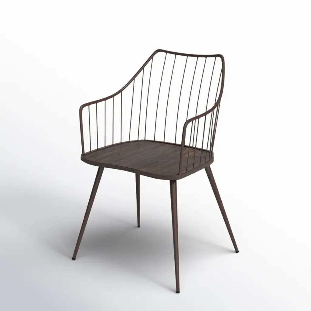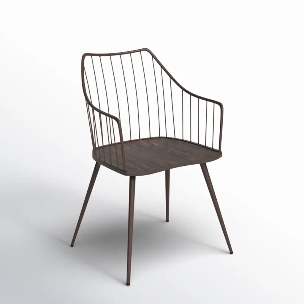 This side chair puts a modern twist on the traditional Windsor design. It's crafted from solid beech wood in your choice of finish to mix and match with your decor, and it sits on four flared legs. We love how the rounded backrest features vertical steel spindles that wrap around the chair's silhouette, creating an airy effect through negative space. This chair requires partial assembly, but it comes with all the tools needed for easy setup.