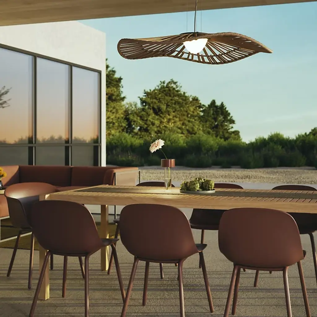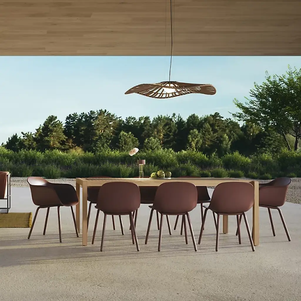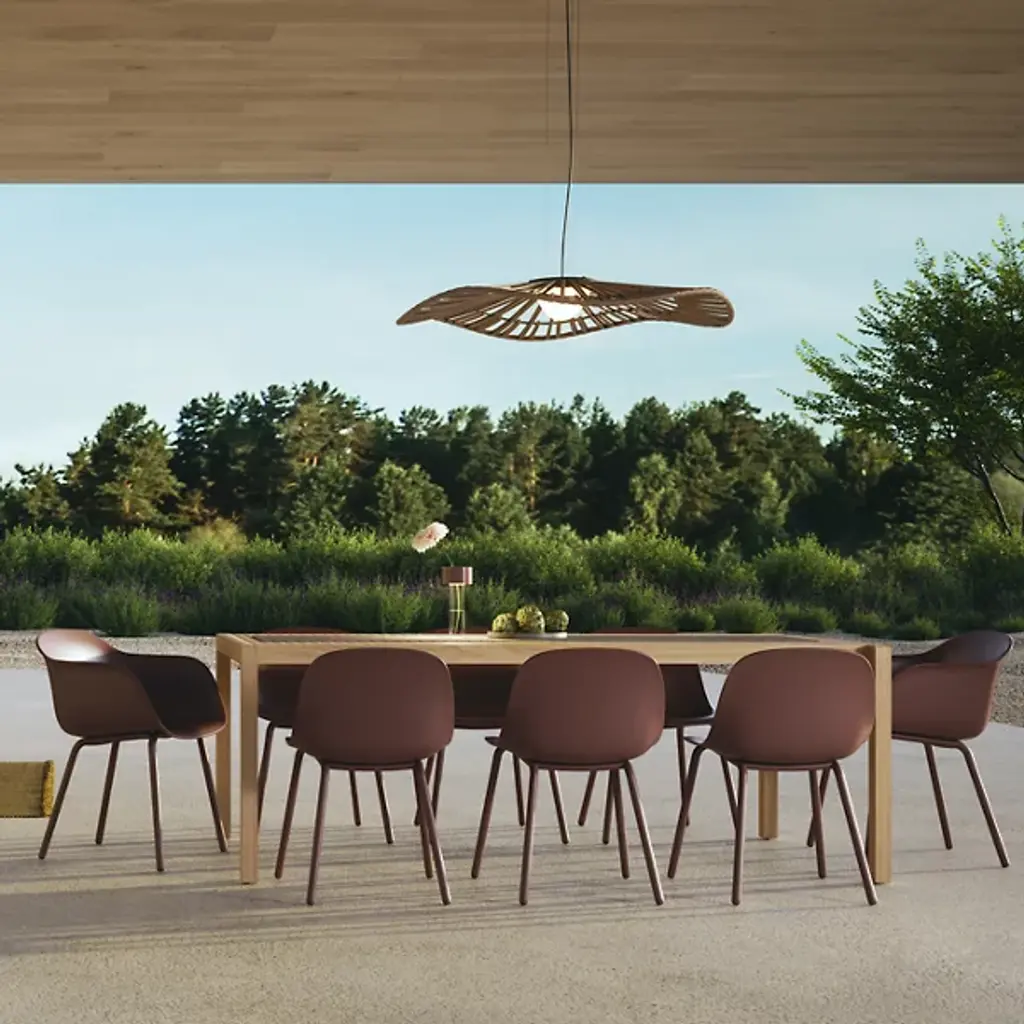 The Fiber Outdoor Side Chair by Muuto is designed for ultimate comfort, with curves that embrace the body. Crafted with sustainability in mind, its shell is made from 100 percent recycled plastics and up to 25 percent FSC-certified wood fibers. The traditional Scandinavian oak lacquer finish on both the shell and wood base ensures water and fungi resistance, as well as exceptional strength for longevity. Versatile, comfortable, and stylish, this armchair is perfect for any outdoor space.