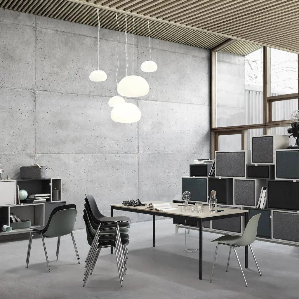 With its A-base, Muuto's shell chair adds easy stackability for moving or storing to its ergonomically comfortable design with a seat made in an innovative composite of plastic and wood fibers. Fiber has a pleasingly textured matte surface and soft inviting touch that suits any home, workplace, conference hall or educational institution. Iskos-Berlin's side chair is available in a range of select colors, with sleek chromed steel legs.