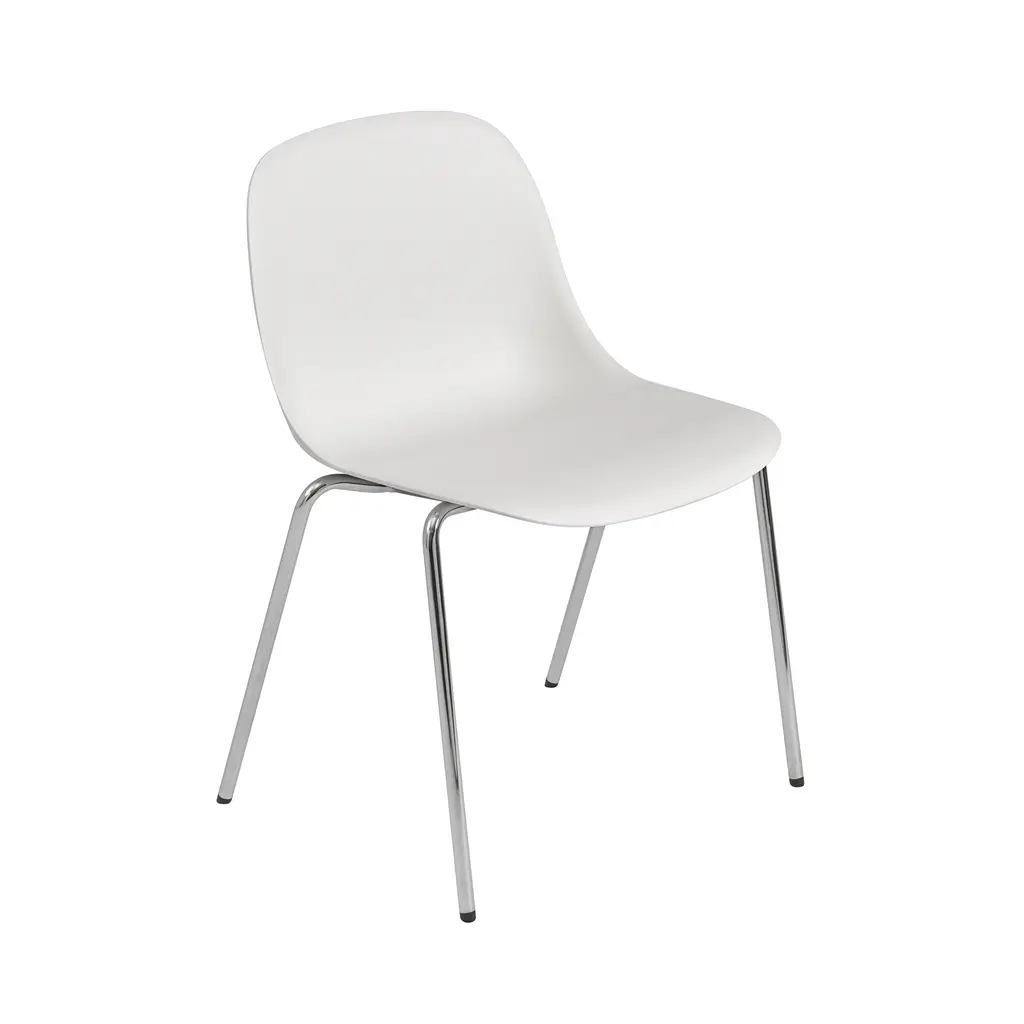 Fiber brings a new perspective to the iconic Scandi shell chair through its innovative composite of recycled plastic (min. 80% recycled) and FSC-certified wood fibers. The natural fibers blend into the surface for a matte finish and add a soft, inviting touch to its friendly, embracing curves that provide extensive comfort. Side chair with chrome legs and glides stackable up to 15 units.