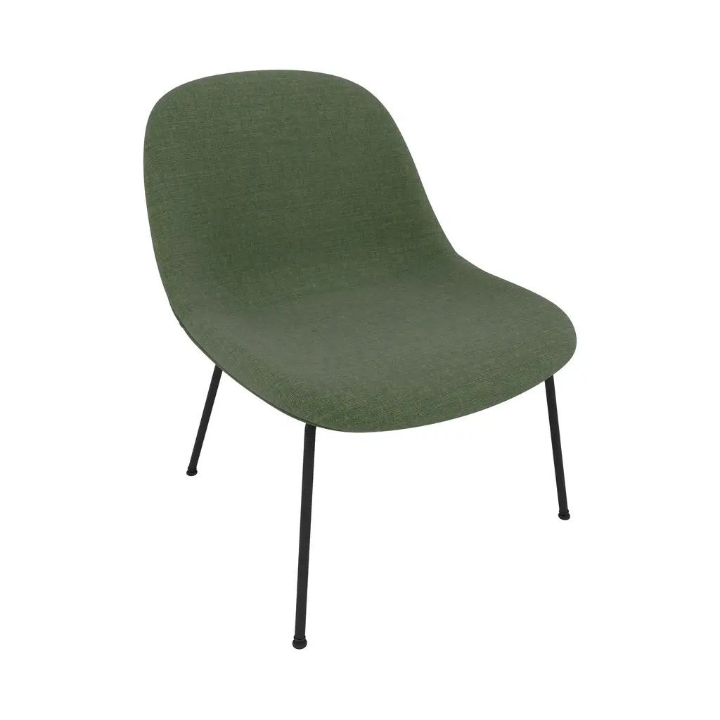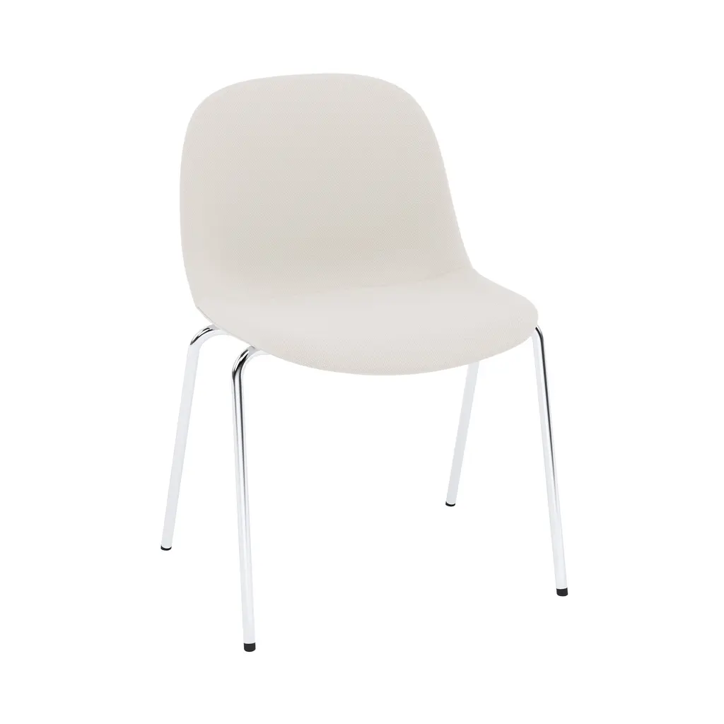 Felt glides prevent scratches on smooth flooring like wood and Muuto incorporates them in this upholstered version of its stackable Fiber Chair. By resting onto the A-shaped chrome base instead of the seat, any pressure marks are minimized. With superior comfort and space-saving dimensions, this update on the classic molded chair from Danish designers Iskos-Berlin is available in a wide range of elevated fabric and leather options.