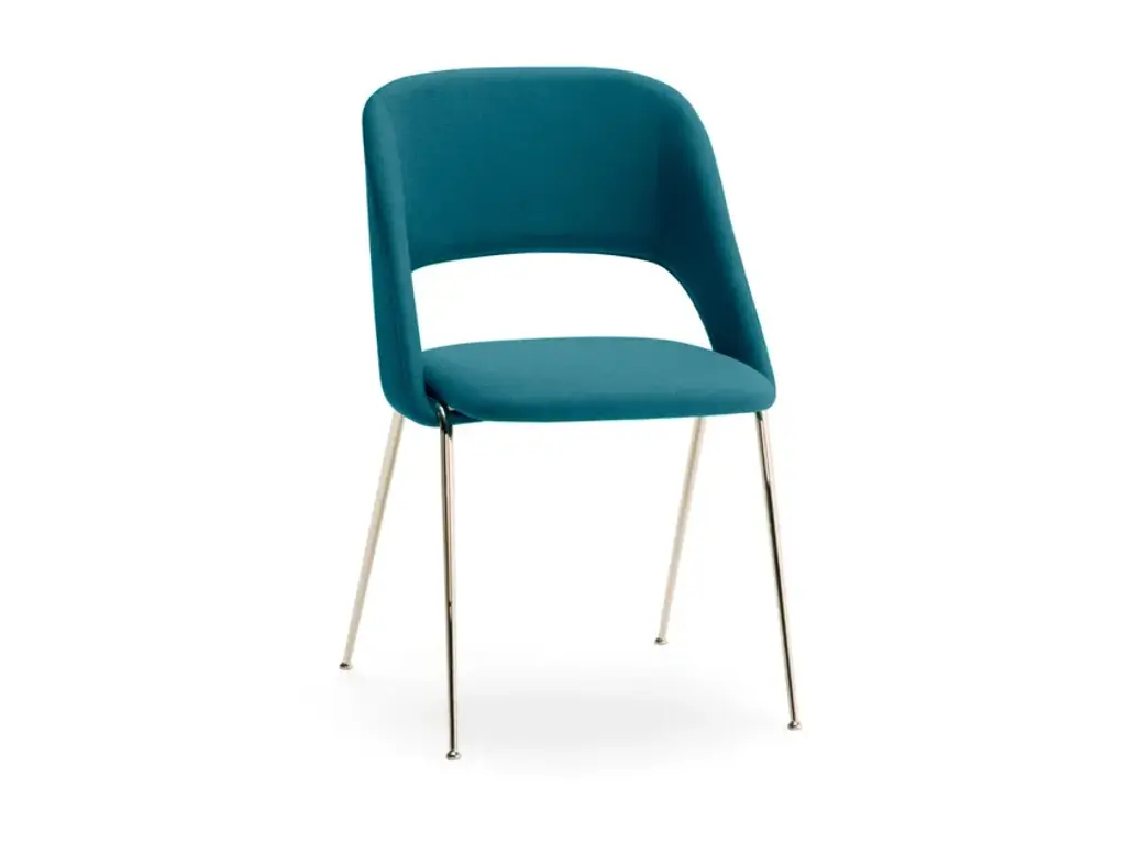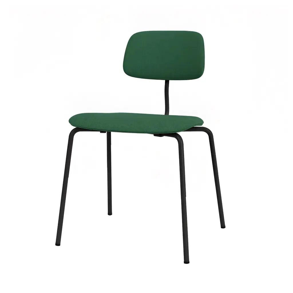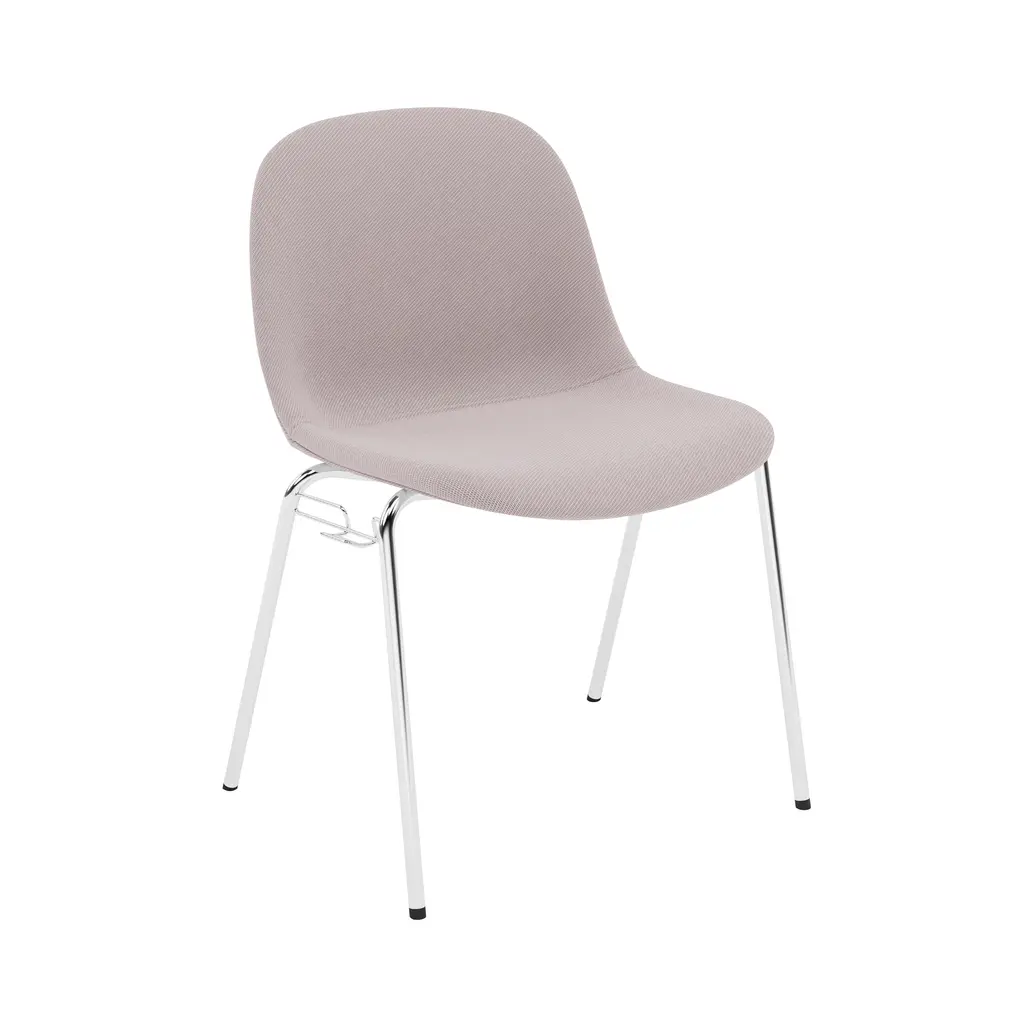 A pre-mounted linking device keeps this upholstered version of Muuto's signature Fiber seating aligned in multiple configurations. From Danish designers Iskos-Berlin, the side chair is also stackable, supported by its chrome base to avoid pressure marks. Ideal for contract use, the design combines well-padded comfort with an appealing take on the forever-classic molded chair.
