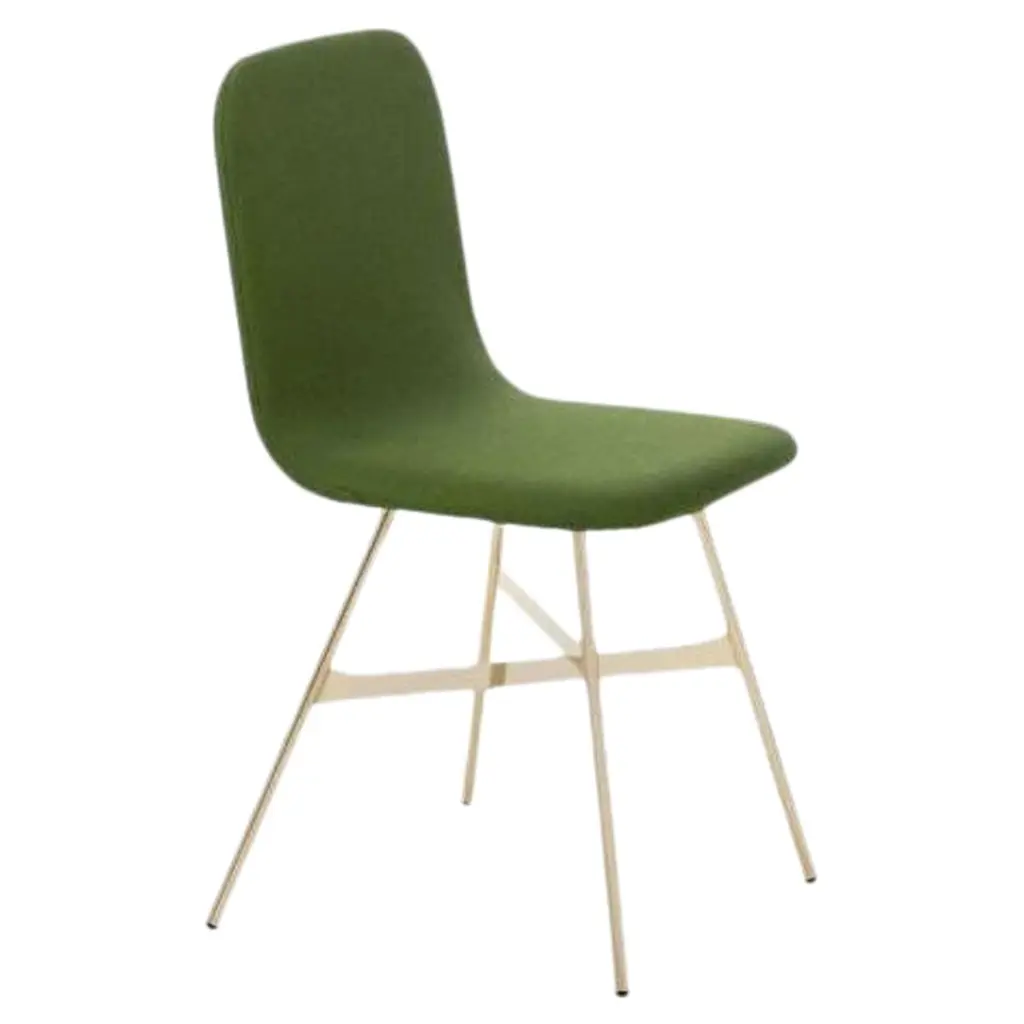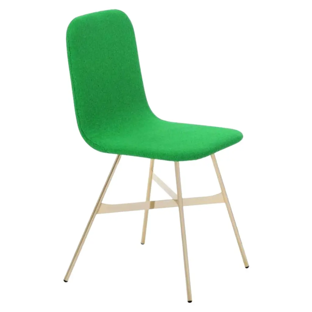 A pre-mounted linking device keeps this upholstered version of Muuto's signature Fiber seating aligned in multiple configurations. From Danish designers Iskos-Berlin, the side chair is also stackable, supported by its chrome base to avoid pressure marks. Ideal for contract use, the design combines well-padded comfort with an appealing take on the forever-classic molded chair.