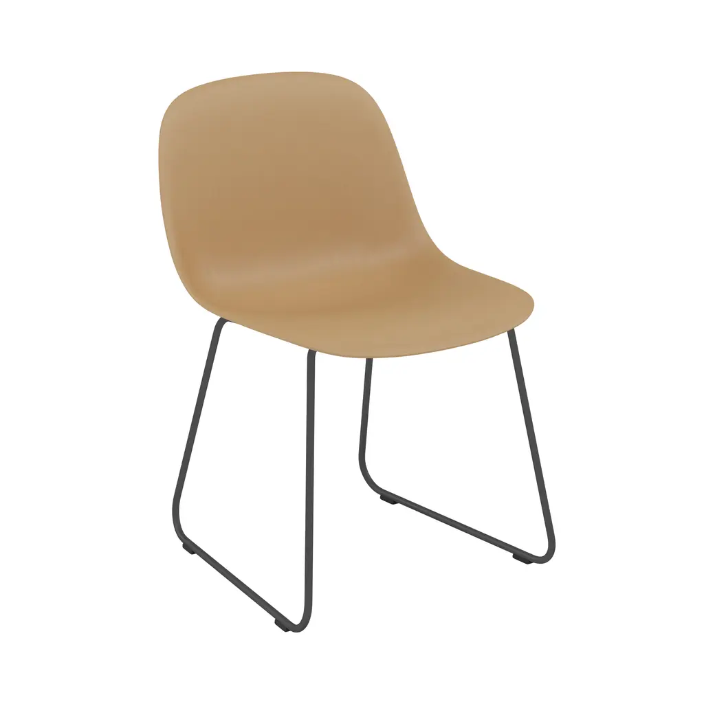 The side chair in Muuto's signature molded seating series from Danish designers Iskos-Berlin has a weight-dispersing sled base to lessen wear and tear on floors. Produced from an innovative composite plastic that includes 25 percent wood fibers, the seat has a smooth matte finish. Both the chair seat and color-matched sled base in powder-coated steel come in a range of characteristically Nordic shades.