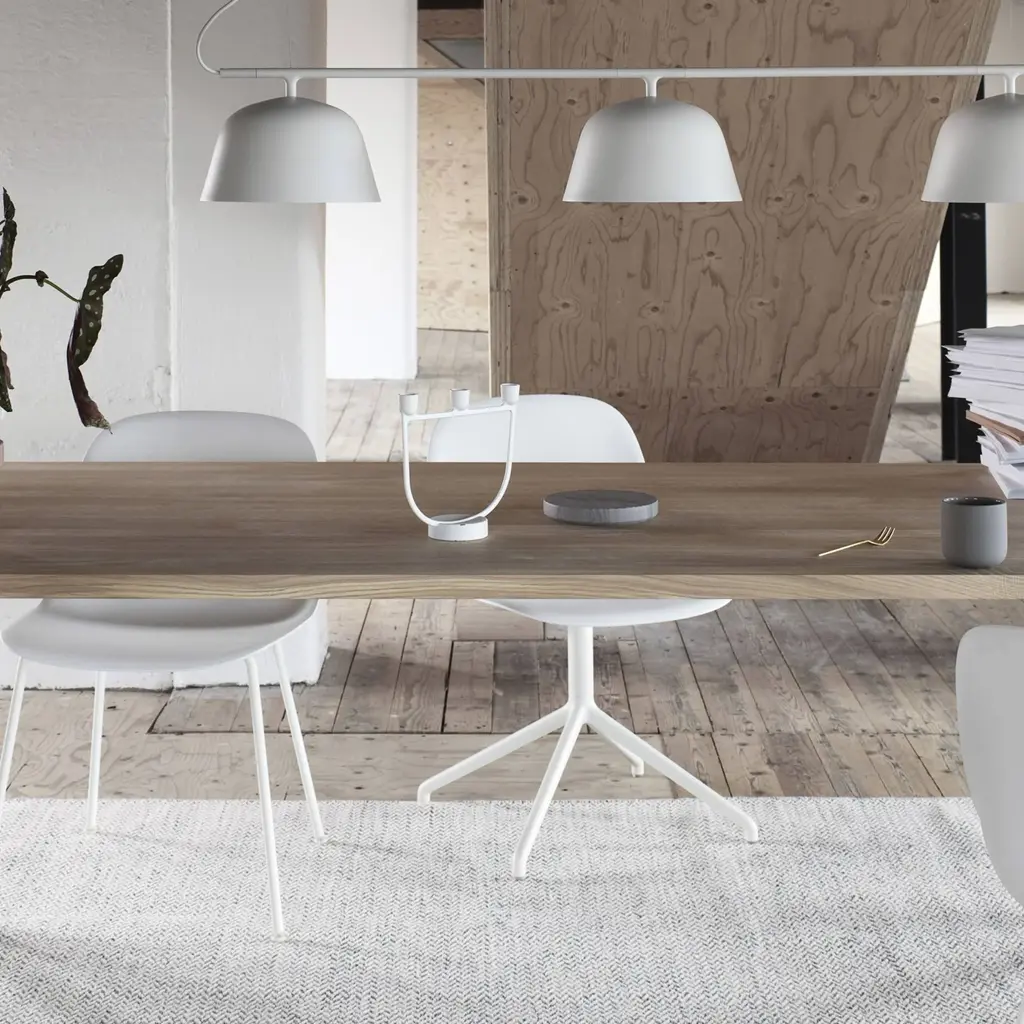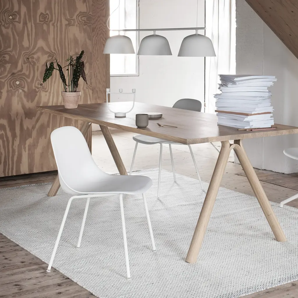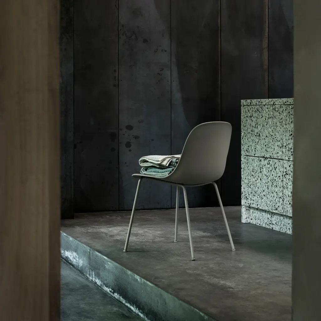 With its well-considered comfort and lightweight profile, Fiber's side chair from Danish designers Iskos-Berlin readily partners with a desk or dining table. Produced from an innovative plastic material that includes 25 percent wood fibers, the molded seat has a textured, matte surface and soft inviting touch. Available in a range of characteristically Nordic shades, the chair seat and matching tube base in powder-coated steel also take up little space in limited environs.