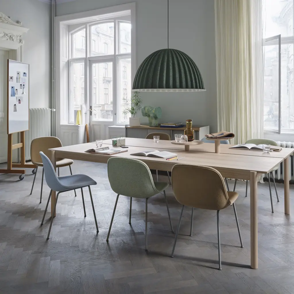 Exceedingly comfortable, the upholstered Fiber model retains the signature lightweight profile of Danish designers Iskos-Berlin. Ready to partner with a desk or dining table, the choice of either refined Kvadrat textile or leather from Camo will definitely up the chic factor. The underlying molded shell is produced from an innovative plastic that includes 25 percent wood fibers with a smooth matte finish. For a clean-lined appearance, chair seat and tube base in powder-coated steel are smartly color-matched.