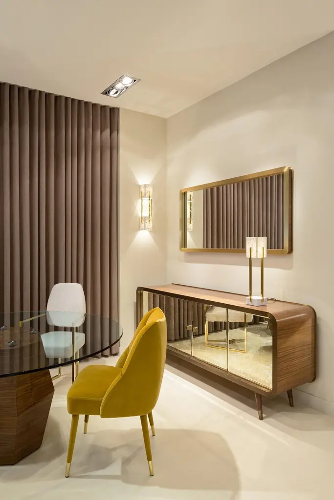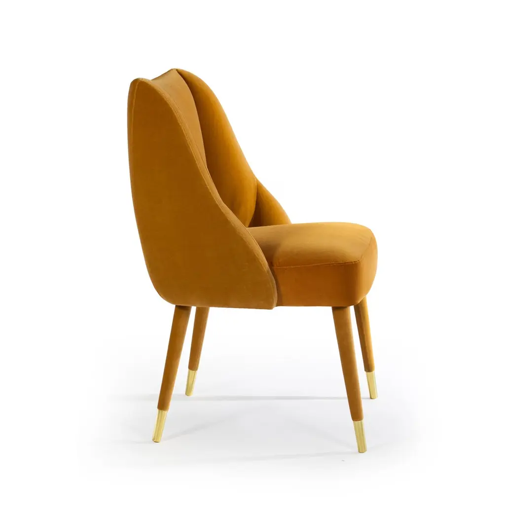 Located in the sunny California, the charming Figueroa Mountain is a magical landscape that led to the creation of the Figueroa dining chair.Evoking the Californian Mountain, the luxurious Figueroa dining chair has the same lines of the original armchair. The long curves of this mountain were taken to the exterior and the mountainside ripples were placed on the inside. The top of the dining chair features the great bow of the skyline and the yellow tone of the ground is replaced by the brass feet.Product details:Upholstery: the price shown refers to the piece without any fabric (the client must provide it). If you're looking for the price of the piece with the fabric shown on the image, please search the product name without the "COM".Metal: Polished brass.COM: 2m 78.65in. (Standard width 140cm 55in.)Product optionsUpholstery: Client's Own Material.Metal: Brushed, oxidized brushed or aged brushed brass/copper/steel.Weight:11Kg 24,3lbsMade to order. Custom sizes and other finishes are available under request.Designed by Joana Santos Barbosa, 2018. Handmade in Portugal.