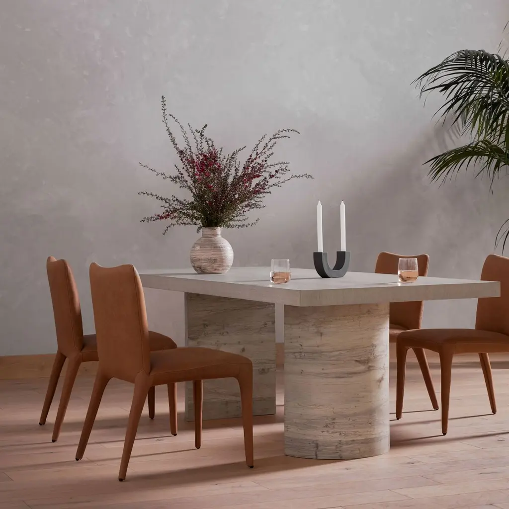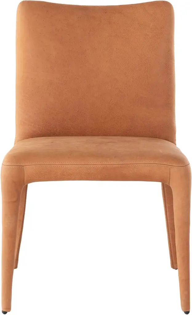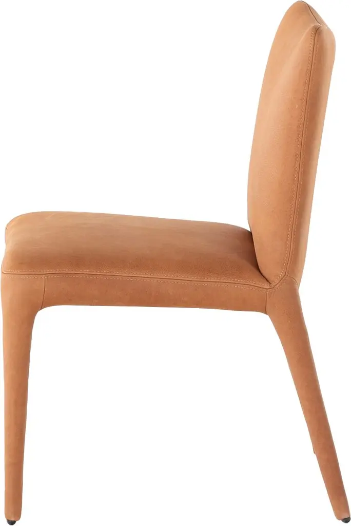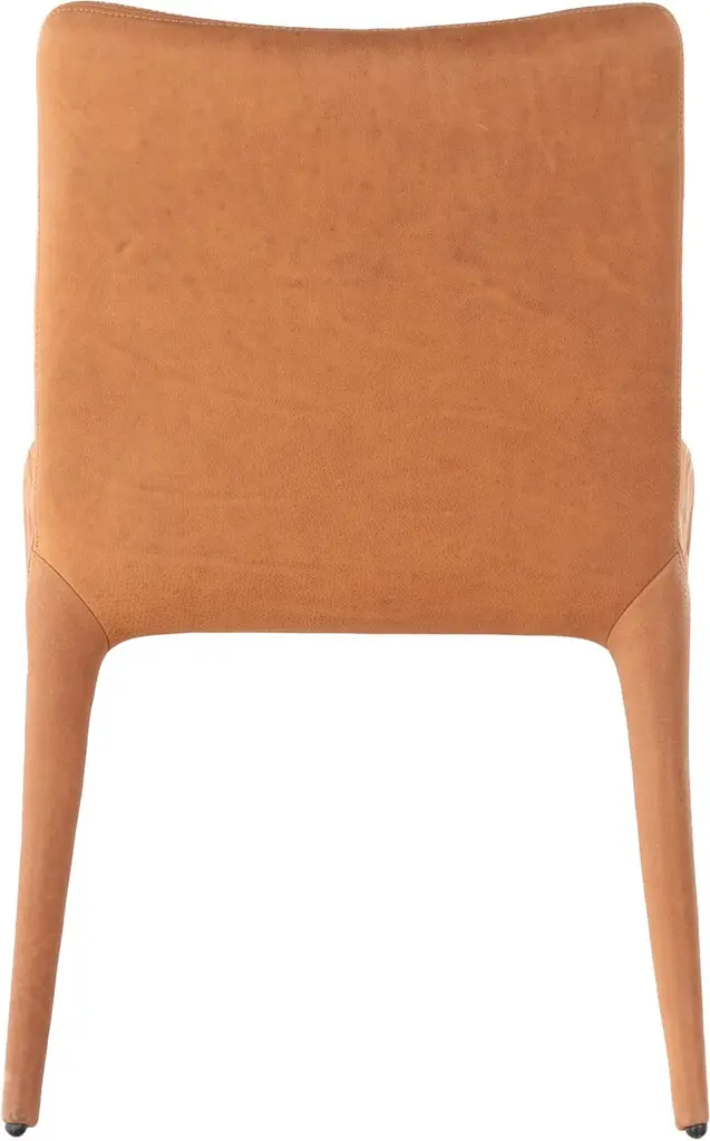 Clad entirely in supple leather, this dining chair is an exemplar of sleek sophistication. Webbing suspension and ample cushioning ensure long-lasting comfort and support.