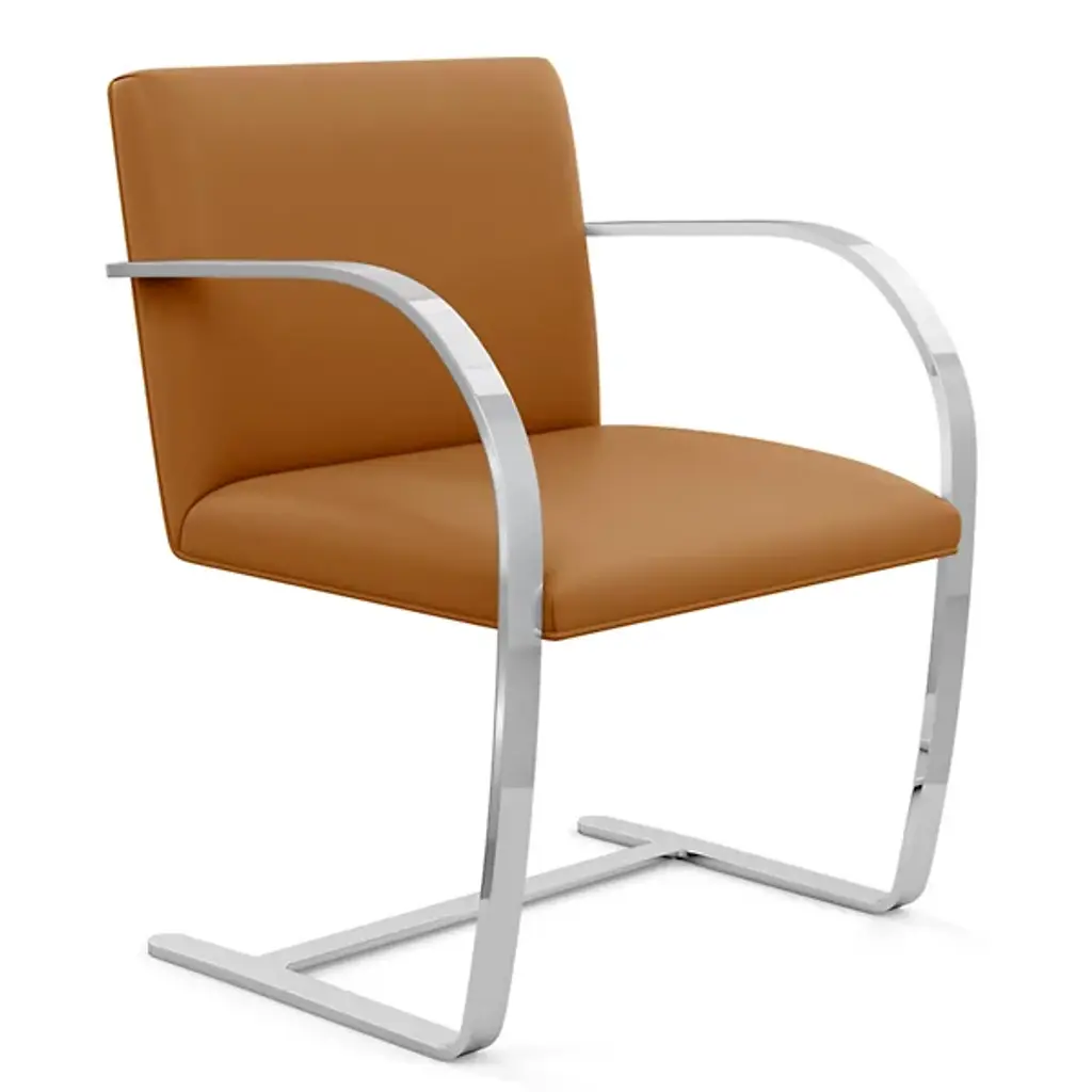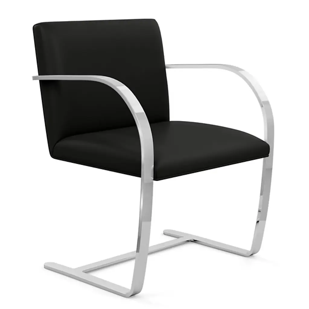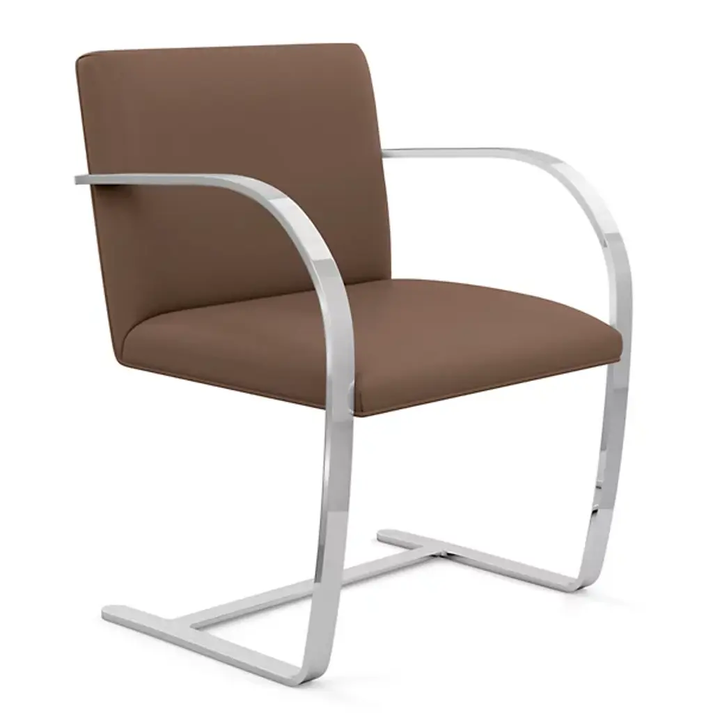 The Brno chair dates from 1930, the year it was designed for the Tugendhat house in Czechoslovakia by Ludwig Mies van der Rohe. In that original home, its minimalistic design reflected the simple sophistication surrounding it. And it's that same minimalism that makes the chair endlessly versatile to this day. This edition sporting a flat bar frame is available with or without arm pads for a personalized fit into your décor story.