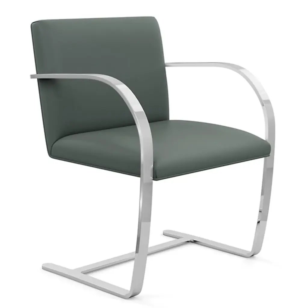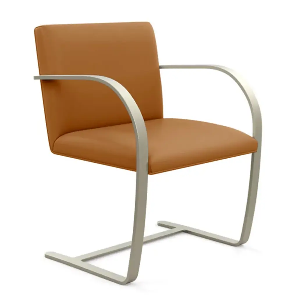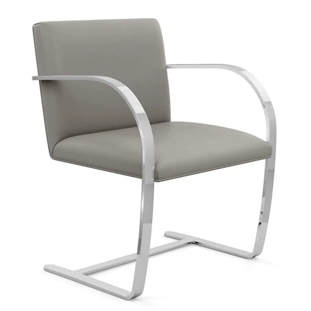 The Brno chair dates from 1930, the year it was designed for the Tugendhat house in Czechoslovakia by Ludwig Mies van der Rohe. In that original home, its minimalistic design reflected the simple sophistication surrounding it. And it's that same minimalism that makes the chair endlessly versatile to this day. This edition sporting a flat bar frame is available with or without arm pads for a personalized fit into your décor story.