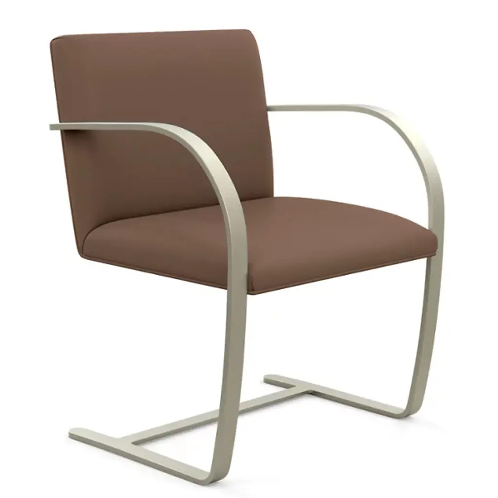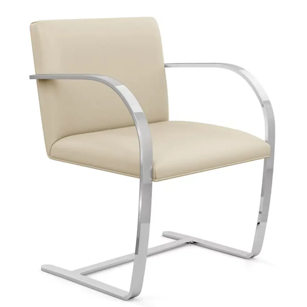 The Brno chair dates from 1930, the year it was designed for the Tugendhat house in Czechoslovakia by Ludwig Mies van der Rohe. In that original home, its minimalistic design reflected the simple sophistication surrounding it. And it's that same minimalism that makes the chair endlessly versatile to this day. This edition sporting a flat bar frame is available with or without arm pads for a personalized fit into your décor story.