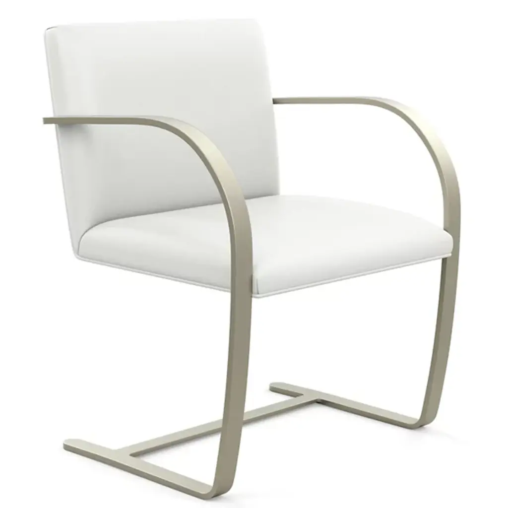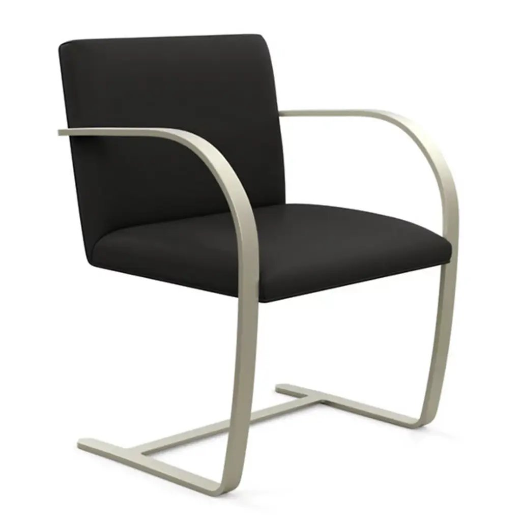 The Brno chair dates from 1930, the year it was designed for the Tugendhat house in Czechoslovakia by Ludwig Mies van der Rohe. In that original home, its minimalistic design reflected the simple sophistication surrounding it. And it's that same minimalism that makes the chair endlessly versatile to this day. This edition sporting a flat bar frame is available with or without arm pads for a personalized fit into your décor story.