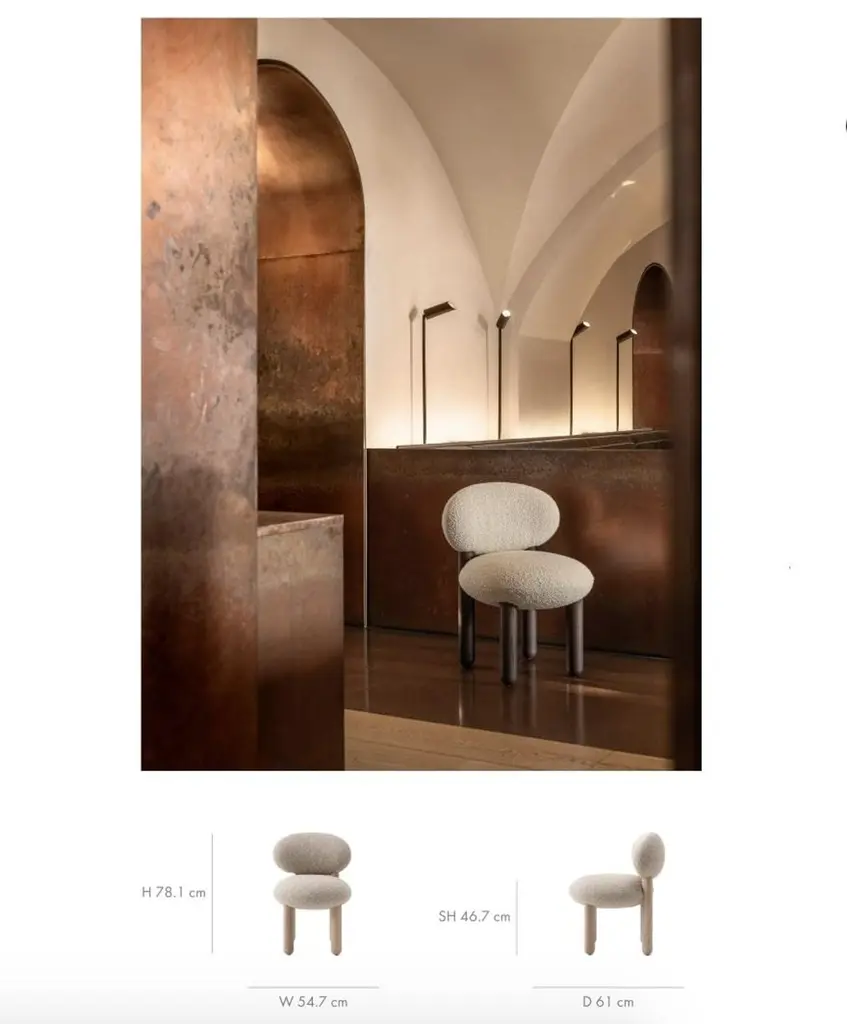 The Flock accent design chair — a super-comfortable and minimalistic piece — was recognized as the winner of the NYCxDESIGN Awards in the Contract Seating category.The Flock Chair, characterised by its smooth, wide backrest and spacious, comfortable seat, results from extensive research, numerous prototypes, and meticulous craftsmanship under the designer's close supervision.The Flock Chair is customizable, available in a wide range of colors and fabrics, with options for upholstered or wooden legs. The legs can come in natural hues or be painted in RAL colors, allowing for a truly bespoke touch. It is ideal for residential, restaurant, and hotel interiors.Designer: Kateryna SokolovaMaterials: wood, plywood, metal, molded foam, textileAvailable in a wide range of colors and other finishes and fabrics on request.Dimensions: H 78 cm, W 55 cm, D 61 cm seat H 47 cm